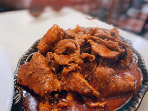 Mankouxiang Restaurant太爱这家的辣鸡心了 剖开放血都能如此软嫩 汤汁浇米饭 绝了 感觉这才是青岛第一 满口香第一 之前谁说的这家辣肉第一?纯瘦肉切片没挂浆直接炒的话 干硬柴很难避免 另外炸蘑菇也很棒 清爽不油腻 蘸料很特色 别家没有 辣炒大头菜如果是不切丝又放浓油赤酱的话 我肯定能光盘 酸辣汤上桌以后大叔提醒我搅搅上头的胡椒再盛出来 好喝 再酸点儿我更爱 12点来的 要了一个四人桌 刚坐下大叔大姐就让点菜 人没来齐菜就齐了 总共5分钟吧 深圳速度~不过能理解 店开了30多年一直都这样 饭点儿排队拼桌翻台店里都习惯了 服务节奏快是常态 这些年就算再涨价 依然还是便宜量大 菜单在墙上 不会点的直接从特色菜那栏开始就行 吃这顿“食堂饭”激起了大家的回忆杀 挺好