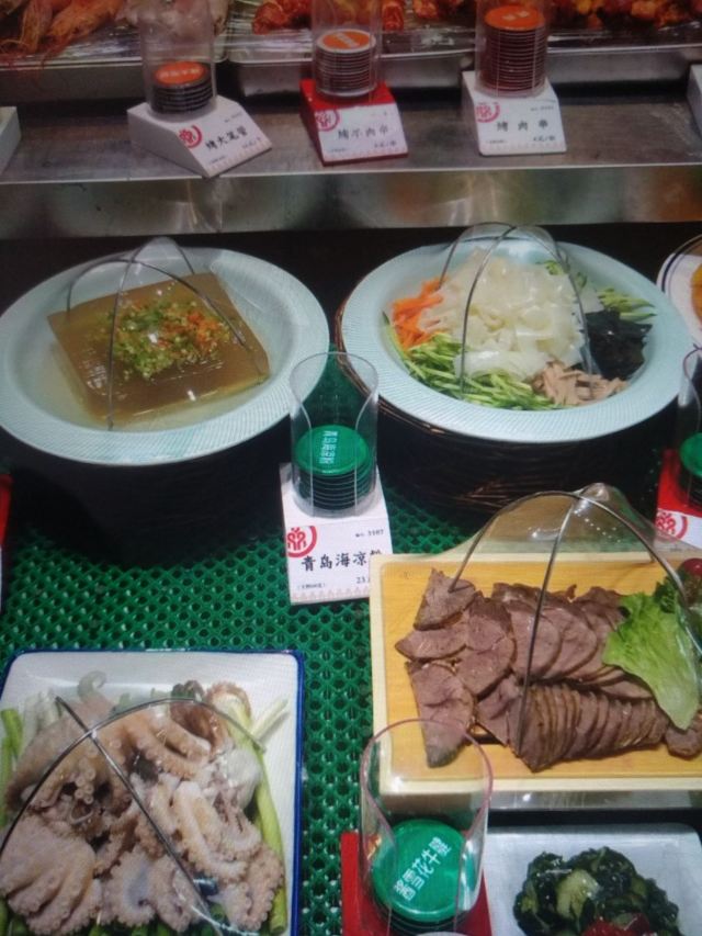 鲅鱼饺,墨鱼水饺,黄瓜虾仁饺,肉丝大凉皮,海鲜疙瘩汤,香辣红岛小蛤蜊