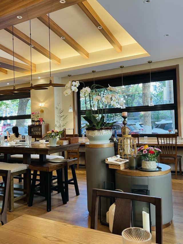 ❤推荐理由: 一家非常上档次而且性价比极高的创意餐厅, 情侣约会、朋友聚会的好去处呦! 📍详细地址: 青岛市市南区闽江四路2号。 🚉交通攻略: 地铁3号线江西路D口出站,步行约750米即可抵达。 🕙营业时间: 周一~周日:11:00-14:00;17:00-21:00。 💰人均消费:90元/人。 🖼餐厅环境: 在幽静的市南老城区林荫小道中, 优雅别致的“暖柿”餐厅正座落于此。 餐厅后面还有一方静谧的小院, 园中绿植🪴小假山错落有致, 若在傍晚时分的院中抚琴, 弹奏一段婉转悠扬的曲子, 那会是多么浪漫🌹唯美的画面…… 🍲菜品推荐: 餐厅主打创意菜,菜品种类繁多, 类似于西餐、东南亚及日料、中餐的主要菜系菜品都有涉及。 体验过几次之后,比较推荐的菜品有: 1、“墨西哥鸡肉薄饼🫓”; 2、“暖阳梅肉”; 3、“寿喜烧”; 4、“甜蜜初夏”(即:甜瓜🍈配椰子🥥冻); 5、“蒜蓉虾仁粉丝煲🍲”; 6、“泰皇咖喱🍛年糕虾🦐”; 7、“土豆🥔泥”; 8、“烟熏三文鱼🍣沙拉🥗”。 🌟亮点特色: 用餐环境非常上档次, 店员服务周到, 菜品众多,价格也非常亲民, 过来用餐🍴体验绝对是物超所值的呦!