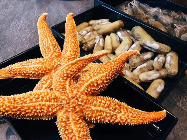安徽的朋友问我 海星好不好吃 我表示我从来没吃过海星 那就一起尝尝吧 这家店来过两次 套餐很合适 单点加了两个海星一起蒸 肉好多 比较鲜香 服务和环境也没什么可建议的 很喜欢这里的吃饭氛围 很青岛!