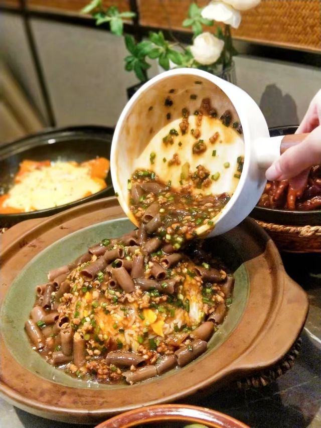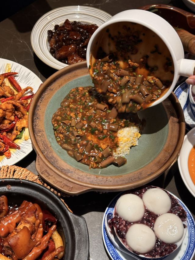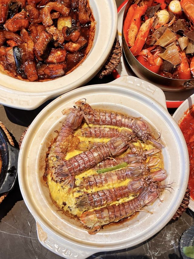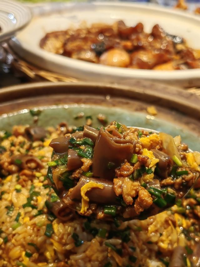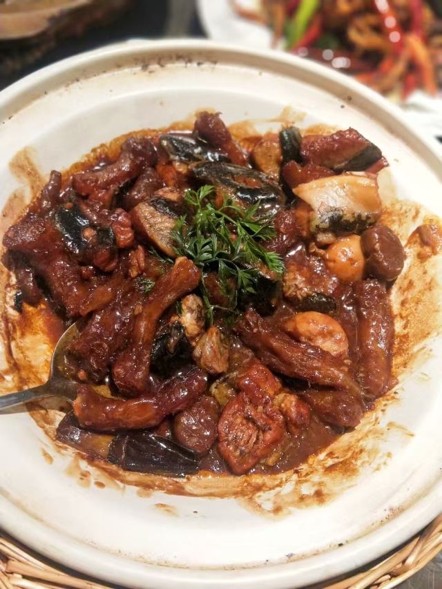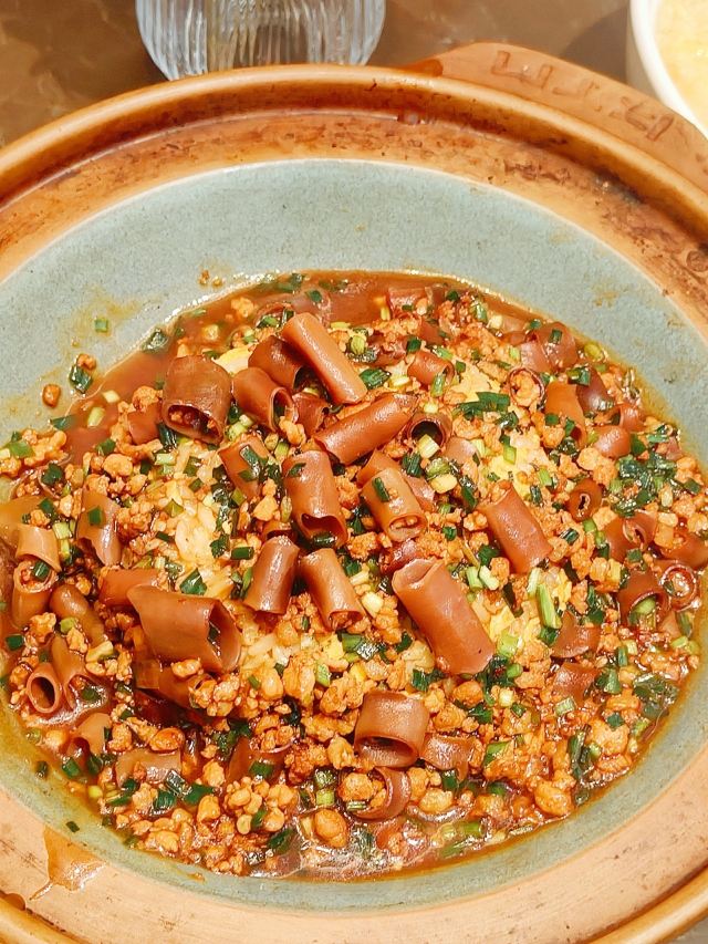 呆萌¥作为吕氏疙瘩汤的升级版,吕氏焗小鲜,菜品大多都做了升级,食材更加高端,菜品也提升了很大档次。但是每家店都很低调。经常去的就是湛山寺旁这家。 #砂锅焗鳗鱼蹄筋 一进门映入眼帘的就是超大的海鲜缸,鳗鱼都是鲜活现杀,蹄筋炖的软软糯糯中带着劲道,配有栗子和大蒜,裹着浓郁的汤汁,超级下饭,最后连汤汁都不剩。 #海肠捞饭 每桌必点菜,肥厚的海肠,切成一段一段的,配着鲜嫩的韭菜,大火爆炒,保留了食材的原汁原味,配着米饭,香迷糊了。 #猪蹄凤爪 猪蹄炖的软烂,鸡爪一秒脱骨,砂锅焗出满满的胶质,咸淡适中,色泽诱人,怎么能做的那么好吃,绝对是家里做不出来的味道。 #板栗南瓜小丸子 浓浓的南瓜粥加上香甜软糯的栗子,桂花又恰到好处的点缀,诚意满满。 甜品也都是根据时节种类有多种选择,小朋友很爱吃。 食材都是当日采购,新鲜现备,还有幸看到大厨的制作现场,拒绝预制菜,吃的健康,吃的放心。 #青岛美食 #青岛旅游攻略 #吕氏焗小鲜 #砂锅焗鳗鱼蹄筋 #五四广场美食 #青岛海鲜 #青岛美食推荐 #青岛海鲜推荐