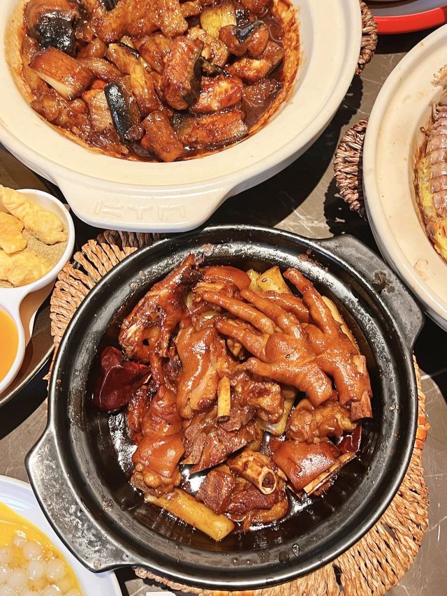 樱桃小丸子儿~🏮青岛老城区宝藏焗海鲜!砂锅一开香迷糊了~ 来青岛不吃这家焗海鲜等于白来!! 开在奥帆附近的老字号 吃完溜达着就能到奥帆中心吹海风🌊 傍晚时分看着海景太chill啦~ ✨必点推荐✨ 🔸砂锅焗猪蹄凤爪 秋冬进补必点! 猪蹄duangduang的胶质满满 凤爪一嗦直接脱骨👍🏻 酱香中带着微微辣超级开胃 连吃三个都不腻~ 🔸砂锅焗鳗鱼蹄筋 每次来都光盘的招牌! 鳗鱼肉质绵密细腻 蹄筋炖得软糯粘唇 砂锅焗得酱香完全渗进食材 真的是香迷糊了😎~ 🔸砂锅海肠捞饭 海肠给得超大方 脆嫩弹牙裹着浓郁酱汁 米饭吸饱了海鲜的鲜甜 一口下去鲜掉眉毛! 🍧甜品惊喜预警🍧 ▪️紫米汤圆双皮奶 没想到海鲜店的甜品也这么绝 双皮奶嫩滑得像云朵 紫米和黑芝麻汤圆搭配甜而不腻 ▪️椰奶碱水粽 椰香清新搭配碱水粽的独特香气 解腻又治愈😃 #青岛美食 #青岛旅游攻略 #吕氏焗小鲜 #砂锅焗鳗鱼蹄筋 #奥帆中心美食#青岛本地人推荐