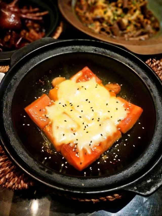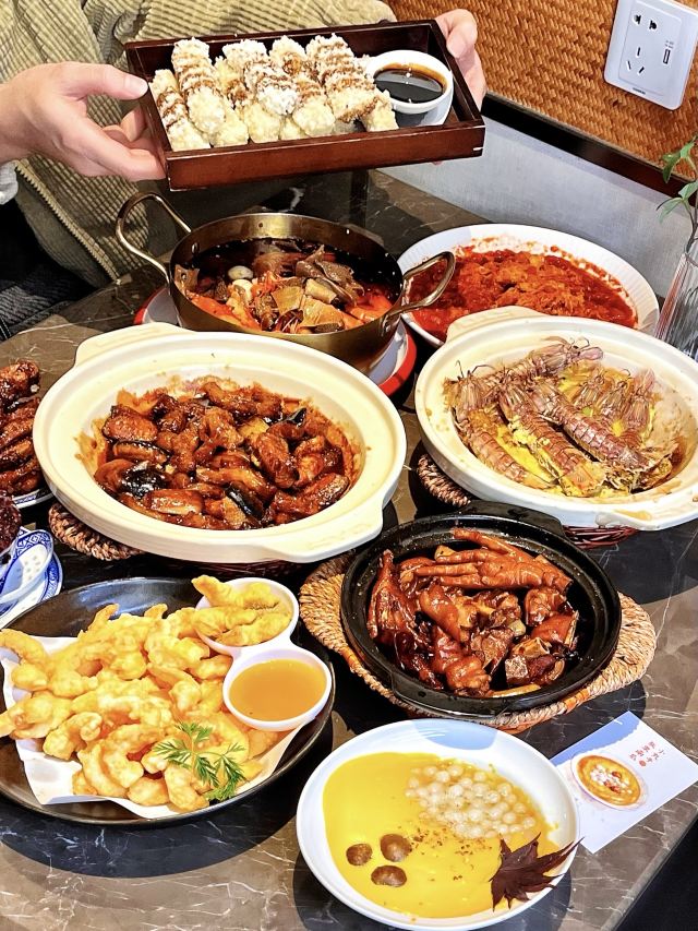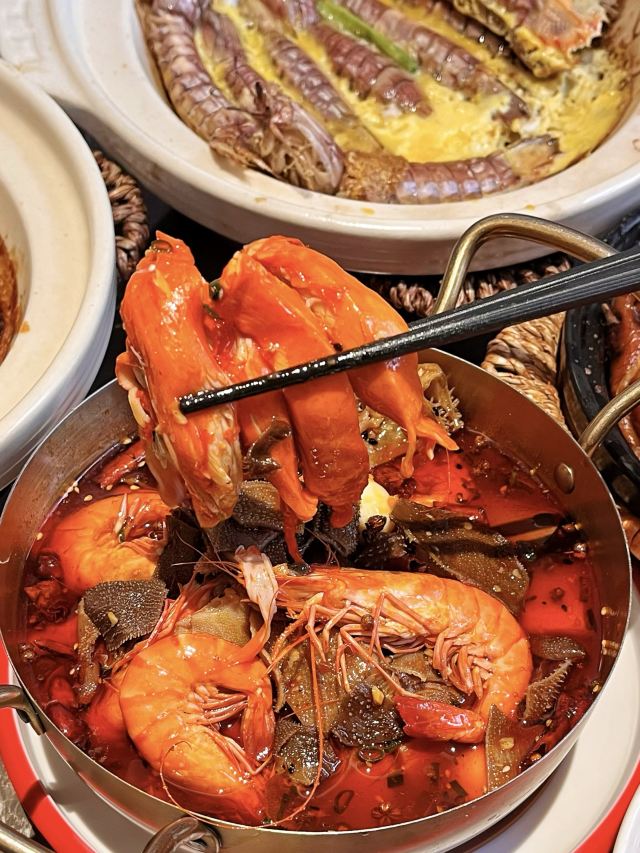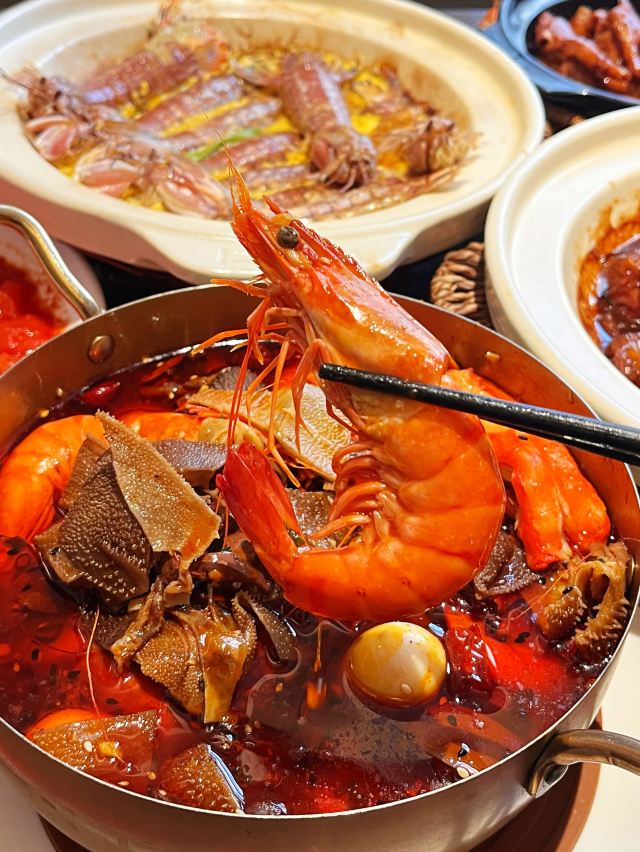 Lü Shi Baked Seafood Qingdao Cuisine (May Fourth Square Main Branch)黄油焗海鲜🧈,很有青岛特色 都是活海鲜,砂锅现点现焗 冬天很适合吃个海鲜砂锅🍲 就爱这种烟火气的小店,老少皆宜👏 ✔️麻的跳冒菜,大虾,毛肚、蟹柳等食材裹着麻辣的红油汤汁,超级下饭,越吃越上头。 ✔️ 砂锅焗鳗鱼蹄筋,鳗鱼肉质软嫩,一点不腥,蹄筋弹嫩。 ✔️ 板栗南瓜小丸子,绵密的南瓜,Q弹的小丸子,香甜加上糯叽叽的口感。