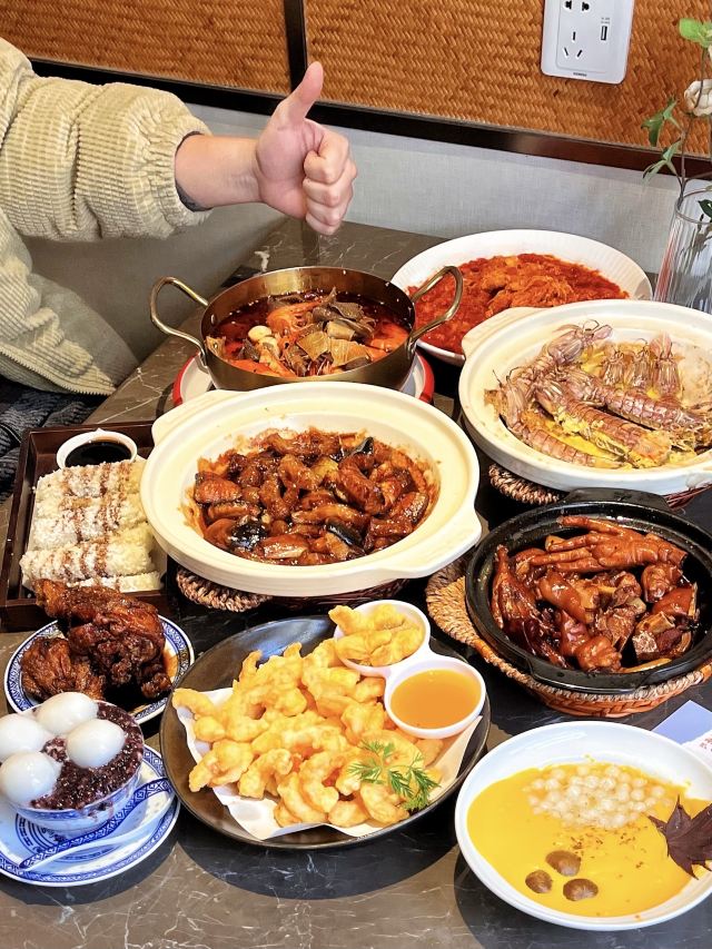 MAY_V藏在五四广场的老青岛味! 青岛老饕私藏的海鲜店~ 这家店常年排队,满是市井烟火气,做的就是地道本味青岛菜,我一般会饭点前来~ 👍🏻海鲜日日新鲜,好爱黄油焗海鲜啊~浓香不腻,嫩而入味,我们全家都爱吃~ 砂锅焗鳗鱼蹄筋 厚实肥美的鳗鱼好香,蹄筋软糯,特别适合老人和孩子吃~ 砂锅焗猪蹄凤爪炖得入味,鸡爪入口即化,猪蹄很嫩很弹牙,得到全桌一顿猛夸! 海肠捞饭鲜气十足,米饭吸满汤汁,是刻在青岛人DNA里的味道! 搭配有甜有颜的小甜品,幸福感拉满! 适合家宴、聚餐、招待亲友,吃完逛商场备伴手礼,或者去奥帆中心漫步海边,美食与浪漫兼得,来青岛吃本地菜就选这! #青岛美食#青岛旅游攻略#吕氏焗小鲜#砂锅焗鳗鱼蹄筋#五四广场美食#青岛海鲜#青岛美食推荐#青岛海鲜推荐