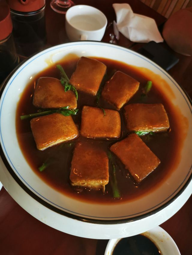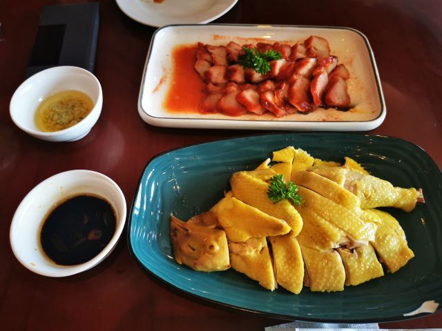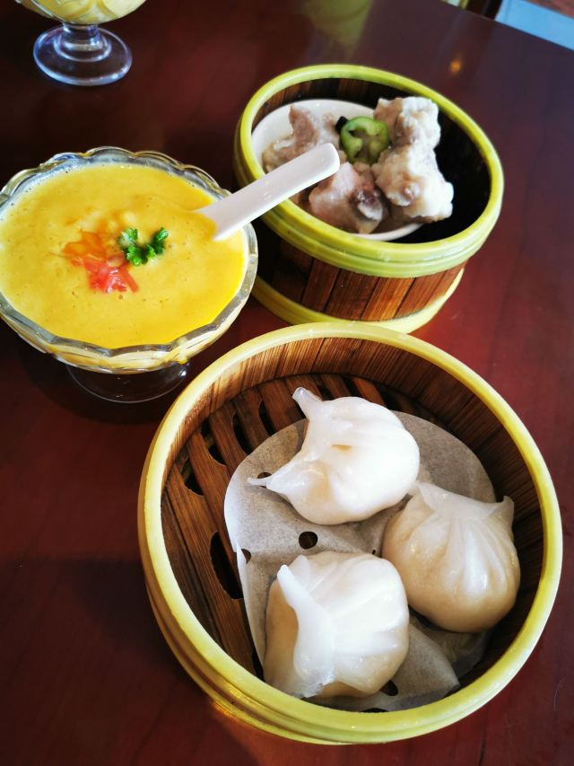 第一次青岛,住在国信体育中心附近,朋友推荐来这家可以尝尝早茶,十二点到的,没有等位,很好找,就在国信游泳馆旁边。服务员很热情拿着有图片的菜单帮忙推荐先点特色菜,我们就俩人,服务员也提醒哪些菜适合俩人吃的量,半只白切鸡(不油很清淡),叉烧肉(之前因为健身没怎么吃猪肉,今天吃了得半盘子肉很劲道甜甜的口味不错)海肠炒饭(鲁菜的咸鲜汁很入味,特别下饭)豆腐(也很好吃汤汁拌饭也很香)其余的点心粉肠也算是中规中矩。俩人花了340元,也快赶上自助餐的价格了,有点小贵,不过一分价钱一分货,个人觉得还挺好吃的,值得推荐尝试下。