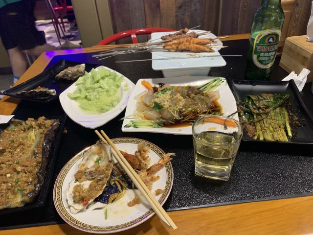 来台东吃烧烤,他们家真的是太实惠了人均也就五六十,而且装修的风格也是那种老青岛的感觉! 烤肉每桌都有一个小炉子不用怕肉会凉掉不好吃,烤肉一把一把吃起来真过瘾! 一边吃这烧烤一边pick童年时光吧!