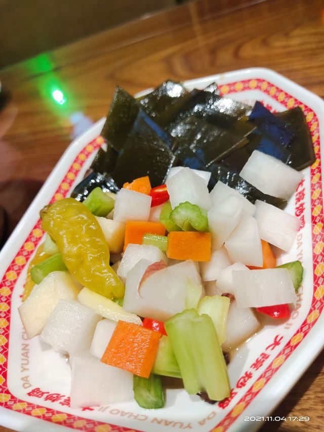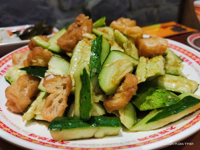 大院拌菜,黄瓜拌油条,博山黄米糕,大院三角饼,方便面,临沂炒鸡配方便面,微山湖鸭蛋粉皮,煎饼,泡椒萝卜丁,秘制鲅鱼酱,临沂炒鸡,青阳炒鸡,苞米面粥