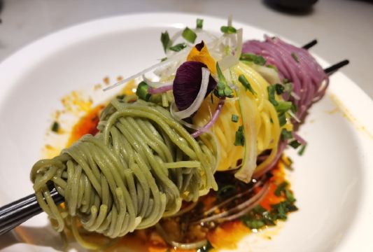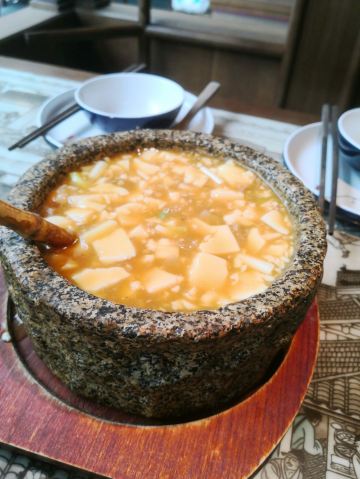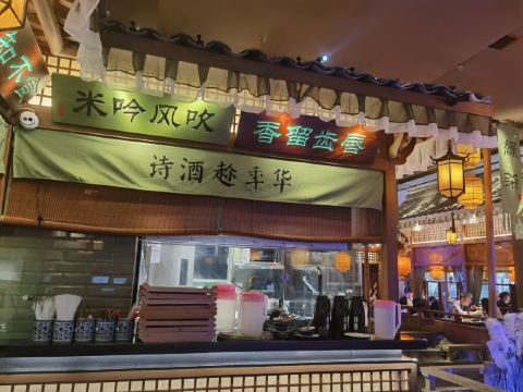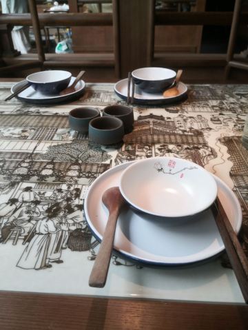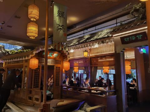 名字很清新,不知道的以为是茶叶店或者茶楼类的。店铺在凯德商场的最顶层,一片古风风格,门口有站着穿着类似汉服的宫女或者丫鬟,统称服务员了!中午人气非常的火爆,稍微晚一步,等位吧!手机扫描点餐,上的倒是很快,10—15分钟基本都能把饭菜上齐全了。石锅豆腐味道确实不错,类似改版的豆腐脑。我的这份上来明显是赶时间没有热透,豆腐基本都是温乎的,还能吃到是凉的嫩豆腐,看了下食材都不是生的,也就没有换了。火焰虾的真是一般化,不咸不甜,还油腻,弄的手脏脏的。阳春面没有葱油拌面好吃。忙的时候,后厨什么快先出什么,所以2份面是第一个上来的,我这里点的少倒是无所谓,点菜多的朋友这样上的话吃完了饭都饱了,菜可能还没有上齐。