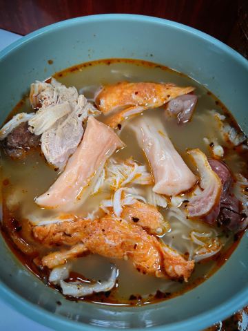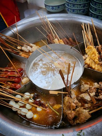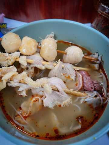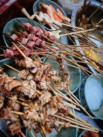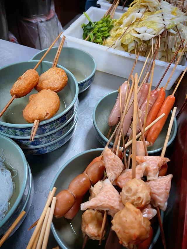 熊猫超人Miss作为一个脏摊串串控来说!真的是太喜欢吃涮串这种食物了!隔三差五三天两头的吃哈! 这家店我上次特意带燕燕开车来吃的40公里! 往返八十公里!觉得不怎么好吃… 当时就很不李姐为啥会说是即墨最好吃的串店! 昨天去即墨泡温泉不知道吃什么就又来了 结果这次莫名变的格外好吃[笑哭]也不知道为啥 「烤鸡皮」鸡皮是甜口的感觉还可以!「毛肚」特别推荐涮牛肚!是我小时候吃的那种小摊的味道!很多年没吃到这种味道了!估计是汤底比较好然后苦肠得到了燕燕和哥哥一致好评!很大一块味道也还不错!脂渣和汤底结合完味道就起飞了!一定要尝试!「豆排」豆排也很好吃不要沾花生酱!汤底的汤汁味道足矣!喜欢吃花生酱的可以单独点!然后烤串都在旁边的保温柜里可以自取~ 门口有两三个车位,晚上八点多去人不太多! 特意来吃没太有必要!去即墨泡温泉然后回来路上顺路来还是不错的选择哈!
