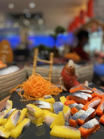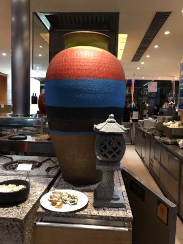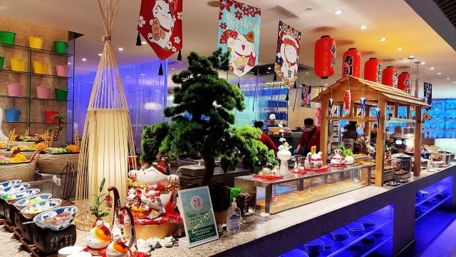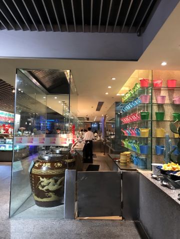 青岛香格里拉大酒店一品堂自助餐厅将海洋的感觉融入了餐厅,花岗岩的食品台,未经雕琢的天花板,原木的餐台等元素相融合带来了全新而又独特的用餐体验。餐厅共有9个独立食档,通过极具欣赏性的布局使食客畅游其中,仿佛置身于“美食大剧院”。
