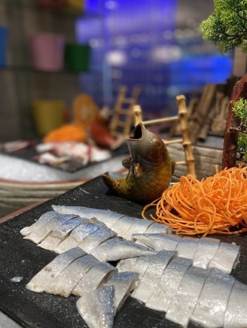 听足音青岛香格里拉大酒店一品堂自助餐厅,是青岛最好的日料自助餐厅之一。位于市中心五四广场附近,地铁站出口旁边,交通非常方便。 香格里拉大酒店建筑外观漂亮,内部装饰雍容华贵。位于一楼的一品堂自助餐厅面积大,环境设计美观大气,侧面落地大窗正对花园,用餐环境非常舒适。 一品堂自助餐厅的菜品菜式非常丰富,有日料,也有西餐和中餐,选择面广,适合各种口味的顾客。当天我们以日料为主,海鲜刺身新鲜,品种多,质量好,入口感觉很棒。海参是限量供应的,点好由厨师做好送上,材质和色味都不错。五星酒店,西点也是精美无比,颜值高,口味好;冰淇淋奶味足,有香草、巧克力、芒果等多种口味,这些甜品都深得女孩子欢心。 去的当天同行人中有人过生日,餐厅特地安排几名员工载歌载舞表示祝贺,还送上生日蛋糕,非常暖心。不愧为五星酒店,面面俱到,整个用餐过程令人感觉愉悦。