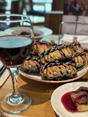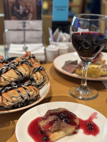 李小胡如果你来青岛想要吃自助餐,那么一定要打卡香格里拉一品堂自助餐厅!很适合朋友聚餐,一品堂自助餐厅,位于酒店一层, 空间设计让人眼前一亮,美食档口分布动线灵活流畅,五彩的颜色使人心情舒畅,增加了食欲。 服务人员会热情介绍食物,煎牛排的大哥说如果我们喜欢吃熟的三文鱼🍣可以拿了让他给煎熟,非常热情[爱心] 【提前预约】我提前几天打的电话预约🉐️位置,店里位置还蛮多的,靠窗的位置偏安静一些,还能看看外边的风景~ 【美食】 🦀️吃大闸蟹的季节又到了,大用蟹很不错,不限量随便吃,但实际上一个人也吃不了多少,因为啃起来太费劲了哈哈哈,我们两个人啃了七八只大闸,已经尽力了哈哈哈。 三文鱼🍣、烤羊排🥩、鹅肝都很不错,还有各式各样的甜品、中式西式料理,旅途奔波后超满足的一餐,以味蕾开启充满期待的青岛之旅。 🖼青岛香格里拉一品堂 📍青岛市一市南区一香港中路9号