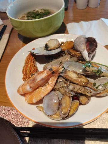 一直吃吃吃……环境:很好,靠近万象城,刚好我们提前来了顺便去逛了会万象城,我们订位的时候sky帮忙留了一个靠窗的位置,可以看到香格里拉花园的景色 菜品:很好吃,喜欢他们家的甜品和三文鱼很肥美 服务:服务员很有眼力劲