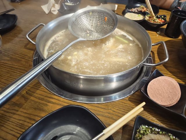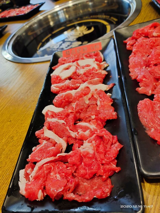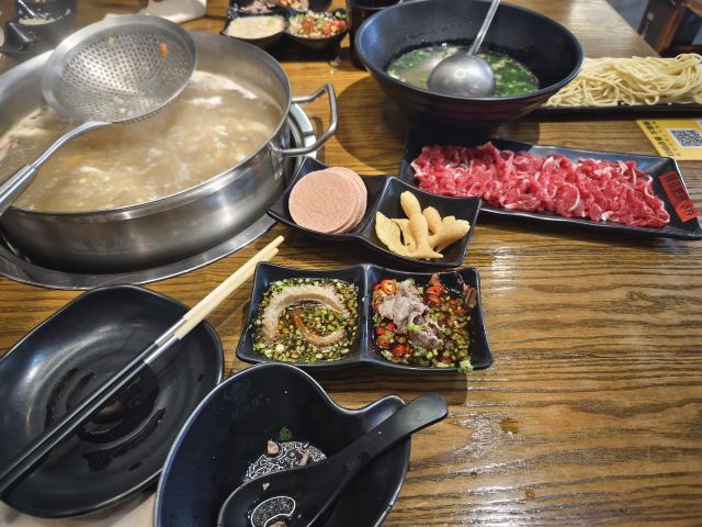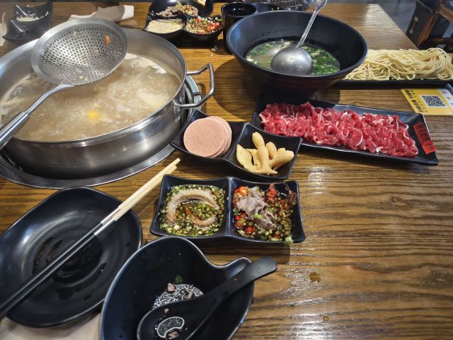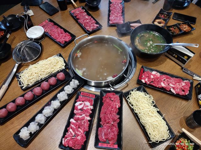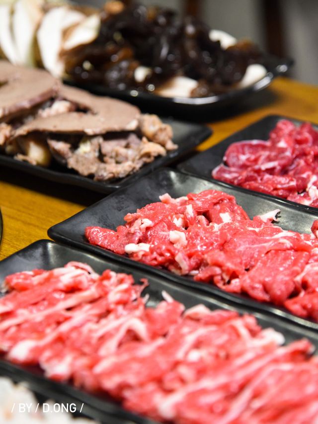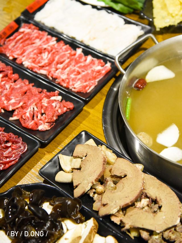团购的双人餐,入冬的北方,还是很适合来一顿暖暖和和的肉肉。 开了几年了,品质一直还不错,牛肉也都是现切的。开餐就送牛肉汤,还有肉的那种[呲牙]大虾丸必须推荐,纯纯的都是🦐。 小料区很多种类,不怕没有喜欢的。 还有山楂片和小食随便吃。