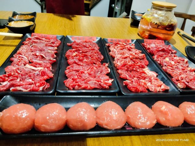 鲜吊龙,手打牛肉丸,潮汕秘制沙茶酱,鲜五花趾,牛杂锅,胸口朥,虾丸,鲜匙仁,牛肉火锅,潮汕炸腐皮