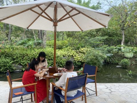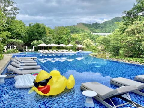 复活节有假期去清远度假 ,感受到广东内亲子度假酒店的天花板 ,理解它为什么叫天花板了。太多东西玩了根本也玩不过来 。特别点赞酒店的服务 ,从门口保安小哥到办理入住 餐饮 游泳池 温泉 ,到解放双手的play 儿童乐园,每一位员工积极热情,服务欢快让度假的心情也倍感愉悦。特别很喜欢酒店的餐饮出品和出品 ,好赞!价格也好赞,早餐遇上节日虽然很多人 ,员工有序安排餐桌,及时收盘 ,我们比较晚来吃早餐 ,工作人员礼貌提醒结束时间让我们取食物,心意非常愉悦 。吃早餐的时候小鸟不怕人地飞下来 还能和小鸟共餐 ,这简直太棒了回归自然。我觉得我还要来第二第三第四第五次 。带我妈和小鸟吃早餐🥣