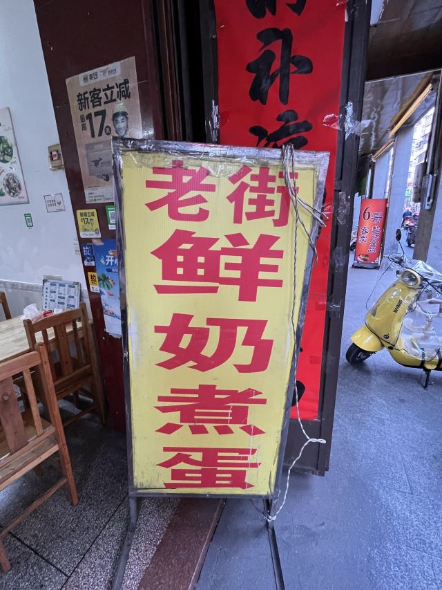 老街上有很多鲜奶煮蛋,这家好像是最早的, 现点现做,鸡蛋加上牛奶,价格8元, 煮好拿上桌的时候,一股浓浓的奶香味, 虽然是甜品,但是一点都不甜,微甜细腻, 热热的来上一口,非常好喝, 还是很喜欢这种类型的甜品的!