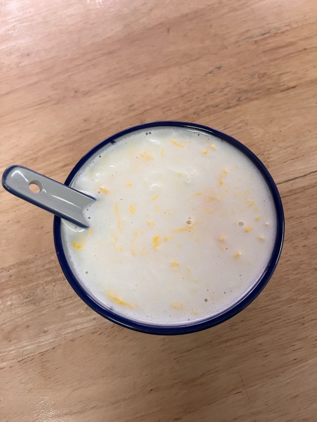 旅游度假老街上有很多鲜奶煮蛋,这家好像是最早的, 现点现做,鸡蛋加上牛奶,价格8元, 煮好拿上桌的时候,一股浓浓的奶香味, 虽然是甜品,但是一点都不甜,微甜细腻, 热热的来上一口,非常好喝, 还是很喜欢这种类型的甜品的!