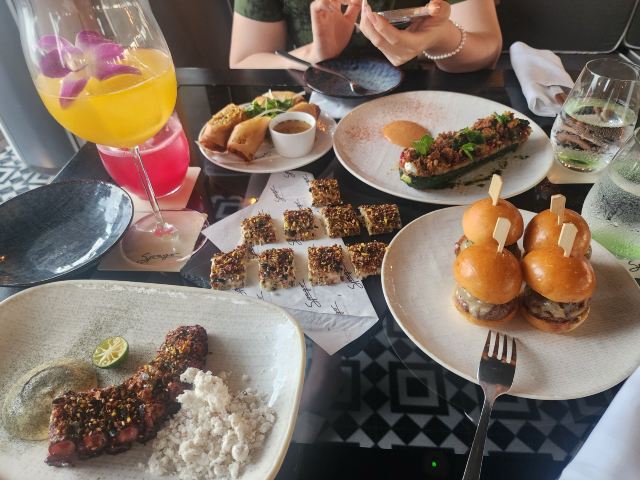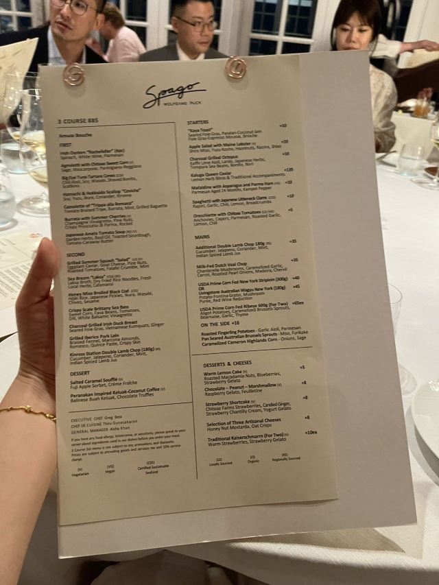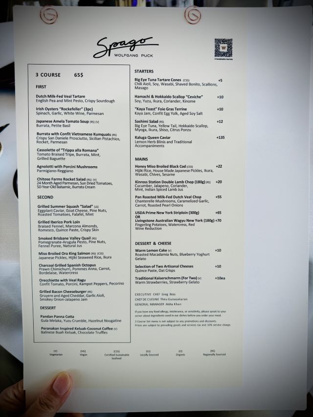 SPAGO DINING ROOM BY WOLFGANG PUCK环境非常非常好的餐厅~ 因为是周五客满,提前一天订的位置。建议周一来,选高脚桌那边,视野可以更好的看到滨海湾花园和运船。可以在日落前一小时来,看无边泳池的日落和运河的鎏金夜画。 另外,Sagar的服务很专业,宾至如归✨