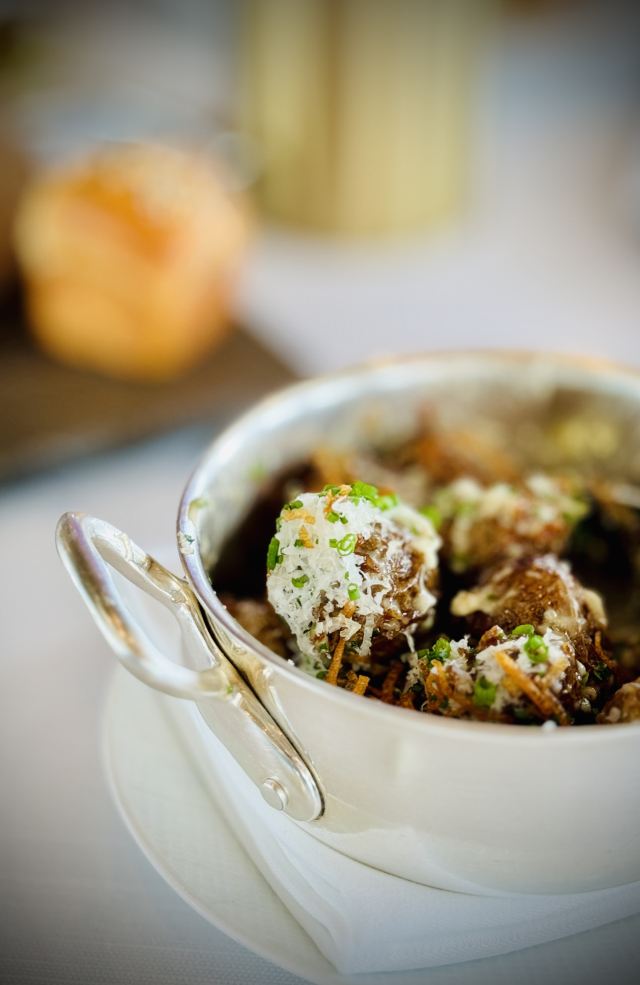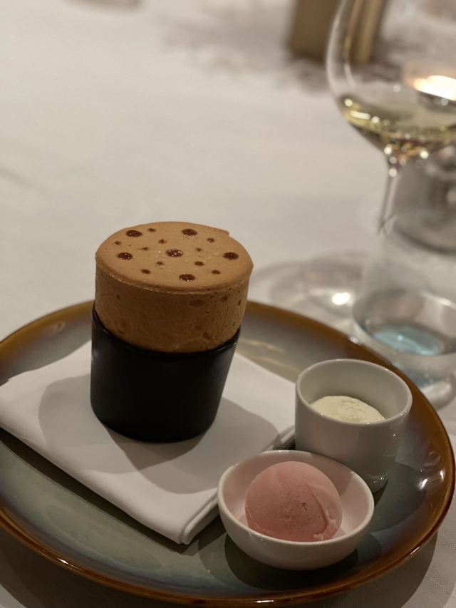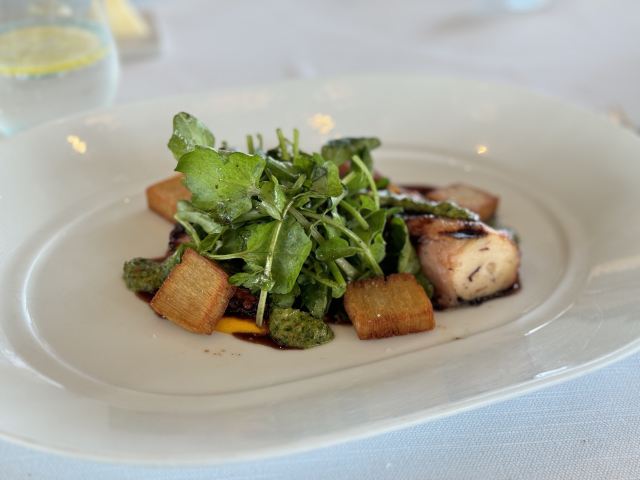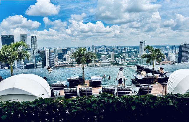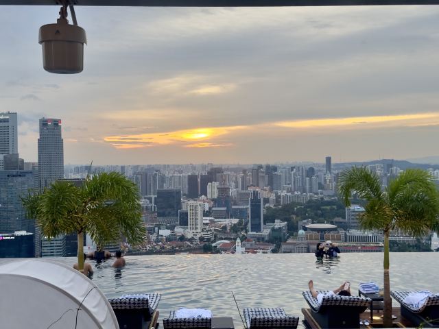 饭醉分子闫涛天际线感想 灿烂千阳的中午来到了新加坡的地标金沙顶楼,倒不是为了看无边泳池里的泳装女郎,而是为了享用一番泳池旁的餐厅——大名鼎鼎的spago dining room by wolfgang PUCK。 这家新加坡排名第一的美国餐厅太难订了,但凡好吃的餐厅都难订,基本上是定律。,spago难定的原因有三个,其一是此处风景绝佳,在弹丸小国新加坡来说,绝对是天际线的所在;其次是味道好吃,一同午餐的卢健生大哥对吃什么喝什么早就熟烂于胸;但更重要的一点是:价格实在便宜。 一汤一主食一甜品的套餐标价65新币,折合人民币不到400块,对照出品,简直是超值。 卢大哥推荐的番茄汤是有法式风格的浓汤,异常鲜滑,也许餐厅的设计就是蘸面包吃为主吧,经常组团“窜访”欧洲的董克平老师也对这番茄汤投下了深情的一睹。 主食是卢大哥推荐的八爪鱼,炭烤得非常香浓,口感软糯如年糕,再分享一下同桌几位小姐姐的三文鱼和猪扒,发现餐厅的水准相当之高,即便是烤小土豆这种微不足道的主食也做得非常好吃,不愧是全球各大旅行指南推荐餐厅的“榜上常客”。spago的餐后甜品甚至咖啡都做得非常有水准,60多新币的套餐里就搭配了松露巧克力等各色小食,在生活成本独占亚洲鳌头的新加坡来说,简直是“平到飞起”了。 于是,忍不住想到国内高端餐饮业流行的话题是现在是否发生消费降级了,我以为不过是去泡沫化而已,毕竟,前两年的高端精致餐饮实质上都是to b而非to c。