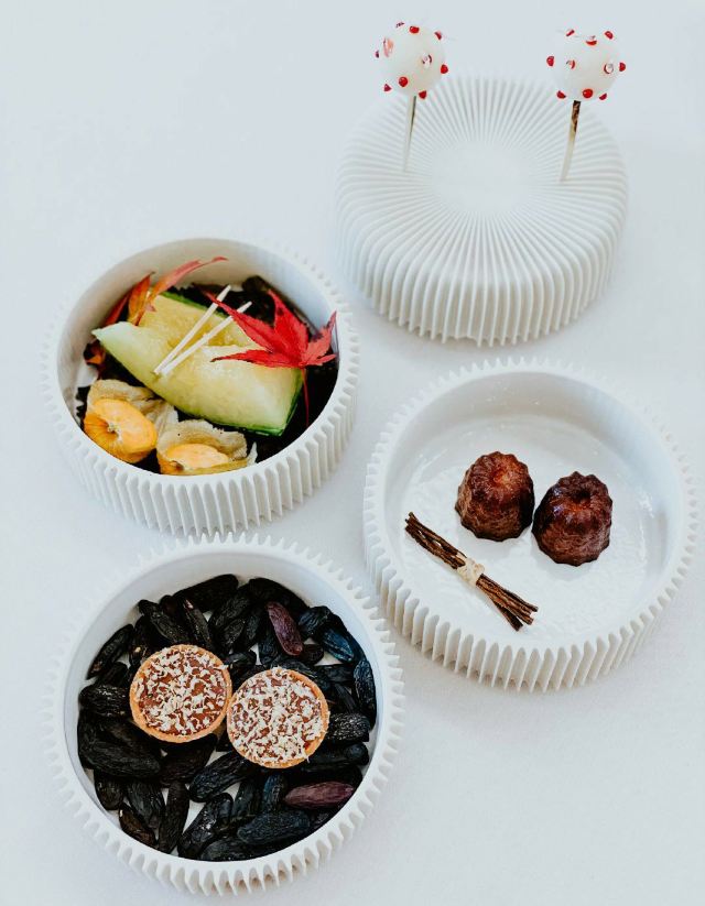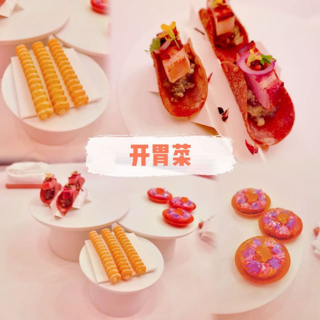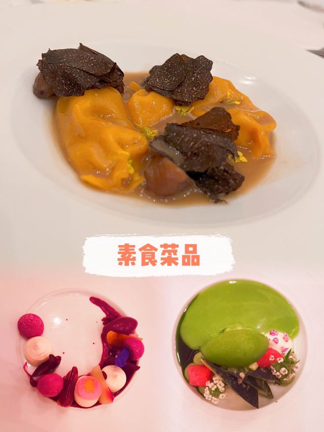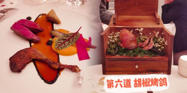 布列塔尼鸽,北海道鲭鱼,甜菜根,63度温泉蛋,鹅肝鲍鱼,龙虾鱼子酱,蘑菇茶,松露面,提拉米苏,蟹黄包,柠檬挞