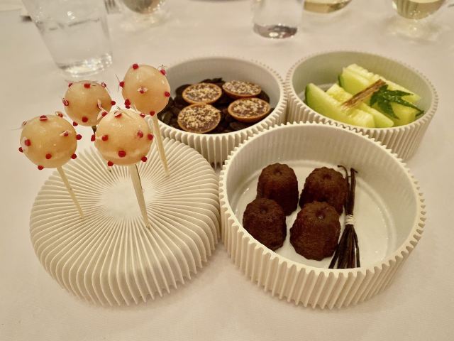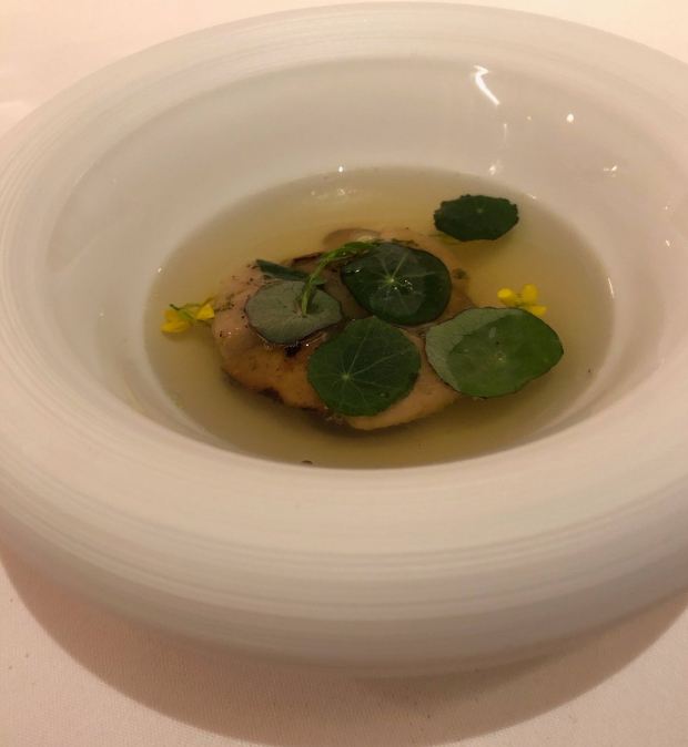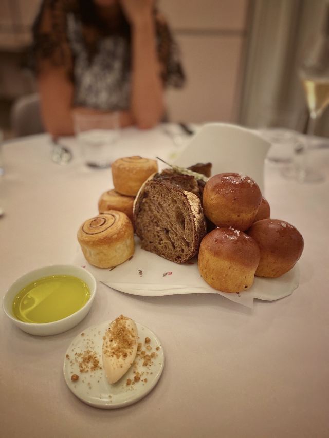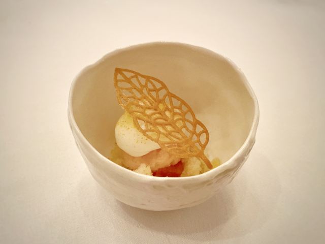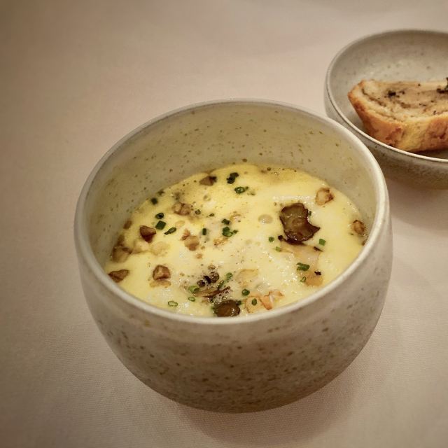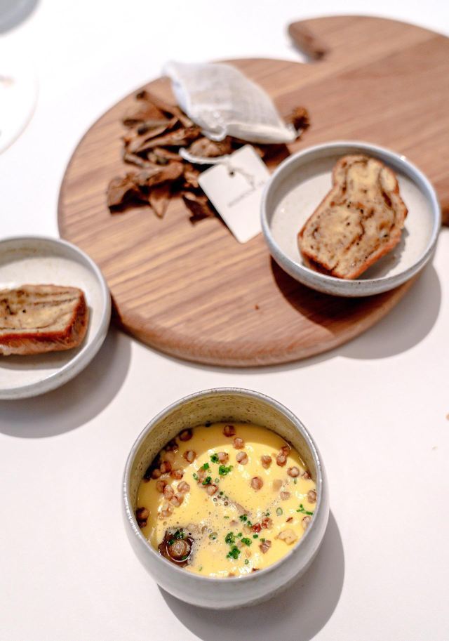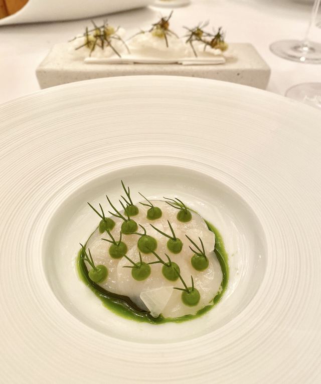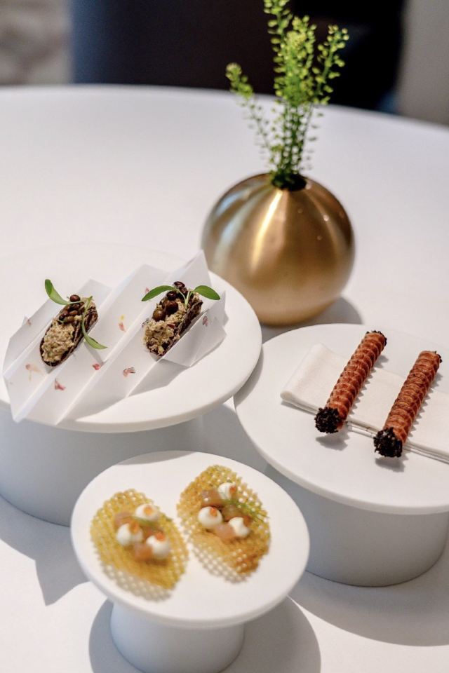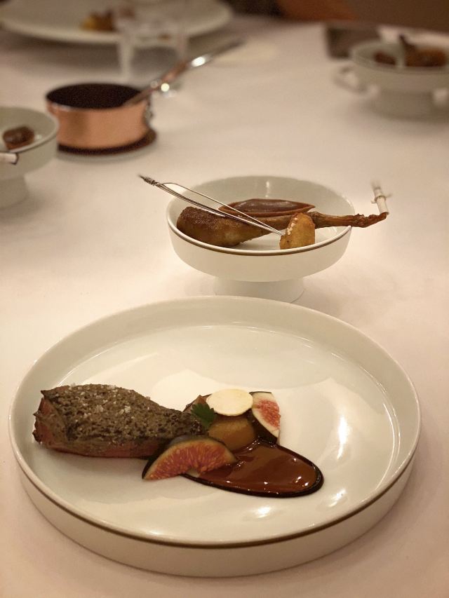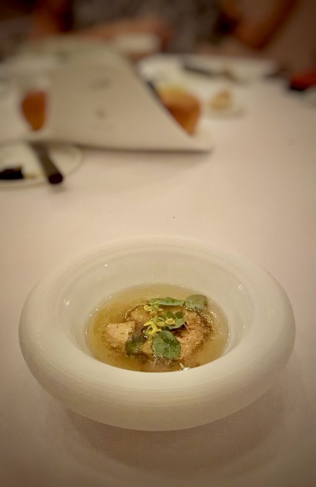 DathyD餐厅做当代法国菜,主厨对餐厅的定位是“where every ingredient has its place and purpose, and is treated with the utmost care to highlight its purest flavours” 晚式经典菜单里,可以换掉经典的熏蛋,加钱替换为当季白松露版本。 两道单独吃味道都不错,uni toast搭配牡丹虾和fingerlemon,味道非常甜美,充满花香气。但是甜密的海胆和咸重的鱼子酱实在不好在一起搭配,虽然搭配了虾肉塔塔和青口泡沫,整道菜充满了海洋的味道 扇贝片搭配辣根和时萝草,附带西米和海藻脆饼。我其实不太懂cracker存在的意义,感觉和整道扇贝的口感和味道都不搭配。 红菜头变奏曲,红菜头各个部位经过烹饪后搭配atracciatella。这种“尝试食材”类的菜,探索的过程和意义大于味道本身。从味觉上我并不觉得好吃,但对于红菜头的探索确实有点意思。 原版的熏蛋很有趣,烟熏rosemary的香气在进食时特地散放一些。upgrade后的这道菜造型普通,不过味道搭配非常美味,烤牛肝菌、意大利西北的栗子、耶路撒冷的洋蓟,搭配大分市的鸡蛋和白松露。最大程度的还原了每种食材原本的味道,每一口都是享受。 整晚最喜欢的一道菜,鸭肝和鲍鱼在猪骨汤里,鸭肝已经嫩到入口即化,鲍鱼也煮的软嫩弹牙,汤鲜到眉毛里了! 烤金吉鱼搭配西班牙式铁板鱿鱼、伊朗藏红花和大头菜。味道好吃,鱼皮口感酥脆,鱼肉细嫩 附赠的一口小食比较普通,感觉画蛇添足,正菜味道很不错,鸽子肉很嫩,搭配的栗子酱和无花果很好的调节了各自的味道,锦上添花的同时完全没有喧宾夺主。 正式甜品是柚子挞搭配法式酥饼、紫苏和罗勒。紫苏罗勒的作用下味道清奇。 附送的甜品包括和蜜瓜、可露丽等,香港louise的canele是收费的,但味道确实好吃,这里是餐后附送的,但感觉已经不是新鲜的,外表的焦酥已经没有了 整套菜单感觉每一道的味道都在线,但让人记忆犹新的菜很少,只有一道鸭肝鲍鱼骨汤事后回味了一下。 餐厅优点是味道基本功很扎实,不同食材的搭配后也能精准地突出主要食材原本的味道,正如主厨所说,还原食物本身最纯粹的味道。 菜单的食材来自世界各地,略有噱头,但有些搭配也确实牵强,比如海胆鱼子酱、扇贝、鸽子这几道,附赠的小食完全画蛇添足。