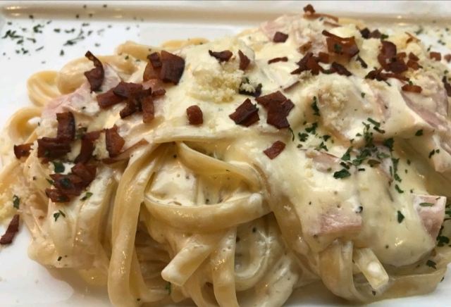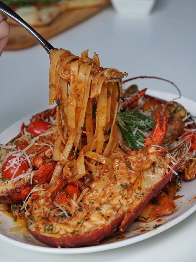 这家餐厅主打意大利料理。价钱实惠,份量十足!推荐超特别的手工制作Super Supreme Calzone ! 不像传统的圆形pizza ,而是三角薄饼形的。里面有芝士和蘑菇,加上pepperoni 还配上三种橄榄油~酸,辣,甜,很特别!口感薄薄脆脆的,趁热吃最好吃! 另外一个主打就是这里的意大利面。推荐Whole Boston Lobster Fettuccine !大只龙虾配上入味够软的意大利面,不错!