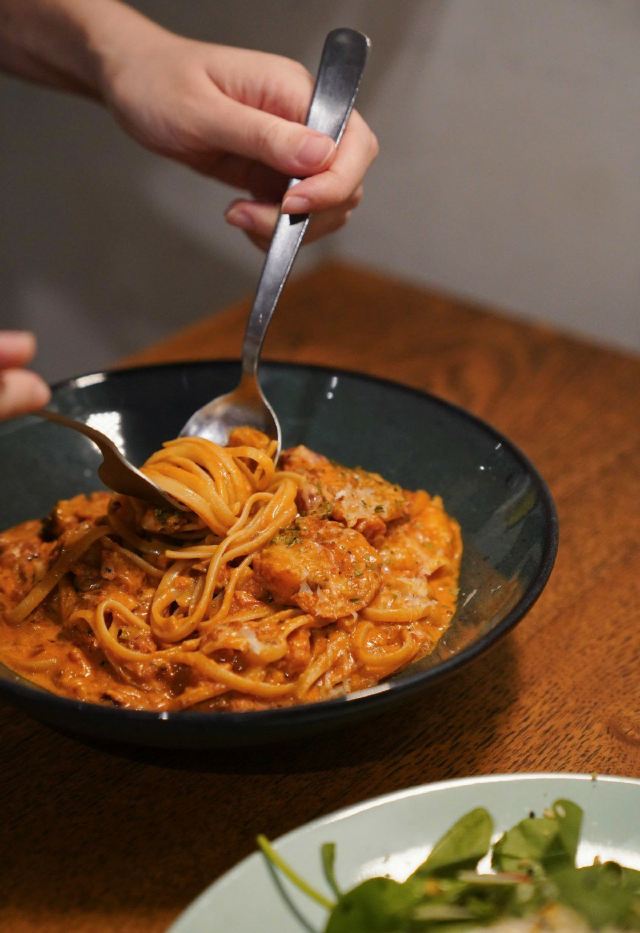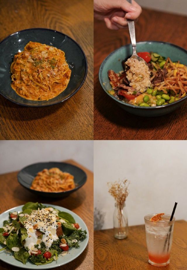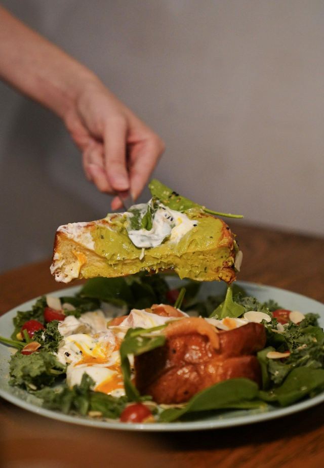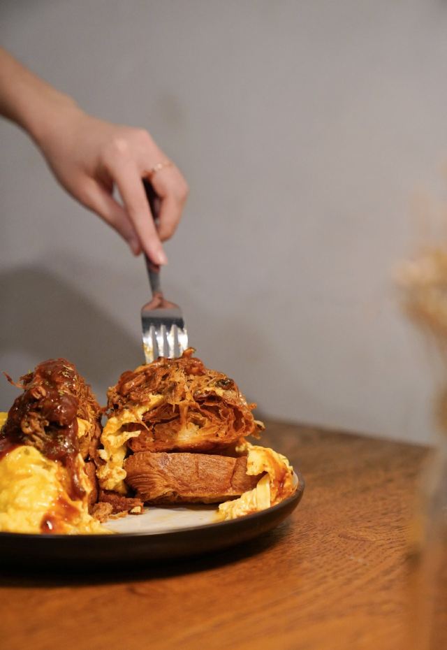 轻轻的一个蚊店里有微型烘焙机,自烘咖啡豆做一杯冰拿铁,超级顺口,咖啡师还会玩各种拉花。 brunch菜单厚厚一本,几乎什么都做,还都很好吃。可能因为远离市区的租金便宜,性价比简直逆天。 sᴀʟᴍᴏɴ ᴀɴᴅ ᴋᴀʟᴇ ᴛᴏᴀsᴛ 厚切布里欧吐司,表面烤得很酥,抹上细腻的牛油果泥,烟熏三文鱼给得超大方。 加上希腊酸奶和飞达奶酪(ғᴇᴛᴀ ᴄʜᴜɴᴋs) 戳开嫩嫩的水波蛋(sᴏᴜs ᴠɪᴅᴇ ᴇɢɢ) 搭配柑橘汁调味的羽衣甘蓝和菠菜沙拉,拌在一起清爽又开胃。 sᴍᴏᴋᴇᴅ ᴘᴜʟʟᴇᴅ ᴘᴏʀᴋ & sᴄʀᴀᴍʙʟᴇᴅ ᴇɢɢ & ʙᴜᴛᴛᴇʀʏ ᴄʀᴏɪssᴀɴᴛ 黄油可颂的口感很绝,内里一点不会湿软垮掉,咬开是浓浓的黄油香气,酥到掉渣,现烤的魅力太大。盖一层偏日式的滑蛋,薄嫩而不散,表面微微流动,出品标致。 橡木烟熏慢烤的手撕猪肉,柔嫩酥软,自制烧烤酱浓厚入味。舔盘! ʟɪɴɢᴜɪɴᴇ ᴘᴜᴛᴛᴀɴᴇsᴄᴀ 超喜欢这盘“烟花女意面”的酱汁。 番茄奶油酱为底,加上重口的腌渍凤尾鱼/小酸豆/黑橄榄,味道咸香酸辣,非常豪放不矜持,是对味蕾赤裸裸的诱惑!坐实菜名。 配料给的烤虎虾和鲷鱼,食材新鲜,鲜味很浓,又想念它夺魂的味道了。 ᴡᴀɢʏᴜ ʙᴇᴇғ ɢʀᴀɪɴ ʙᴏᴡʟ sᴇʀᴠᴇᴅ ᴡᴛɪʜ ǫᴜɪɴᴏᴀ ᴀɴᴅ ᴘᴇᴀʀʟ ʙᴀʀʟᴇʏ 和牛谷物碗。 蘑菇/番茄/毛豆/腌黄瓜/豆芽,有嫩有脆,口感特别丰富,主食是藜麦和薏米,拌一颗完美的温泉蛋。和牛的柔嫩程度也很对,并不像看上去那么清淡,是健康且好吃的。