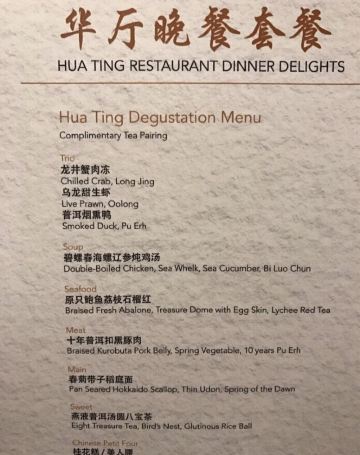 Hua Ting Restaurant也算是著名的粤菜了,位于乌节大酒店的2楼,Orchard road上的酒店众多,这间orchardhotel算不上特别高大.上但是位于二楼的华庭中餐厅享誉已久。就像不怕巷子深,食客很多。装修摆设都很大气,喜欢它家原木色的设计,精致悦目的餐具,食物等待时间略长,但值得。没有老旧感觉。菜品方面,本地圈小有名气,特别是煎炸类的小点心,味道都很不错!我们预订了包房的套餐,海鲜为主,肉类只品尝到叉烧和牛肉。水准一流! *花胶汤*和我们平时喝的不一样,比较清淡,蛮喜欢的! *烧味拼盘*水准一流, *鹅肝水饺*必须推荐, *炒河粉*非常地道和香港本地餐厅一样。牛肉很滑嫩、特别推荐! *鹅肝水饺*吃起来口感也超细腻,鲜香! 最后要关键提一下,这间餐厅来之前非常有必要订位,不然就要等位! 餐厅周内就餐还必须要穿正装,夹脚拖会被拒绝接待!