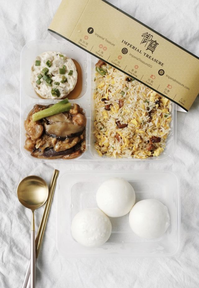 考拉羊洋2004年创建于新加坡的御宝 应该是最爱的亚洲餐饮集团了 主打不同菜系的分店 出品一直很稳 限时供应的午市外卖便当 性价比又逆天了 满满当当盒子都不够装的样子 Set B / 只要16.8+!! (还有14.8+/20.8+的套餐 ) 茄子焖笋壳鱼 雪白鲜滑的鱼肉 裹上鲜浓的酱汁 不仅茄子焖得软糯入味 连蒜头都是又糯又甜 葱段是脆嫩的 香菇也好吃 姜片去腥 最后的酱汁留着拌饭真香啊 老少平安 一道传统粤菜 嫩豆腐和鲮鱼滑拌匀 隔水清蒸至熟 入口嫩滑鲜甜 豆腐的香味太出挑了!御宝还在里面加了鲜笋和马蹄 那个清脆的口感超加分! (因为没有鱼刺所以老少平安) 叉烧蛋炒饭 被它背后深厚的实力完全震撼到 这鸡蛋是金灿灿的 蛋香配合锅气扑鼻好闻 全部打散 和米饭一起粒粒分明 整个蓬松到一个境界 米饭保持油润的光泽 但吃起来没有一丝油腻感 叉烧的份量很足 咸香可口 本来以为鼎泰丰的蛋炒饭算得上优秀 这份应该可以随便吊打了