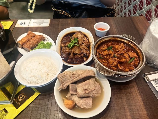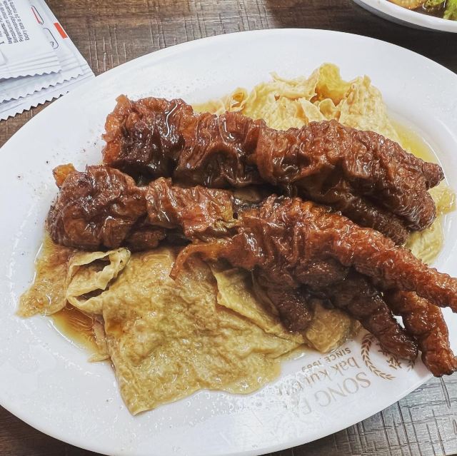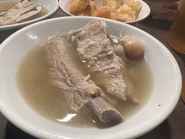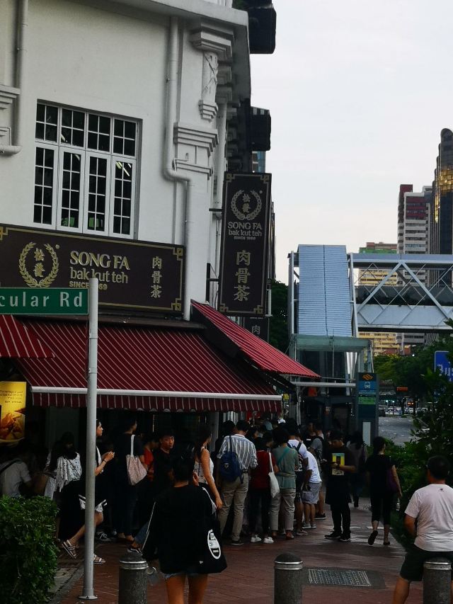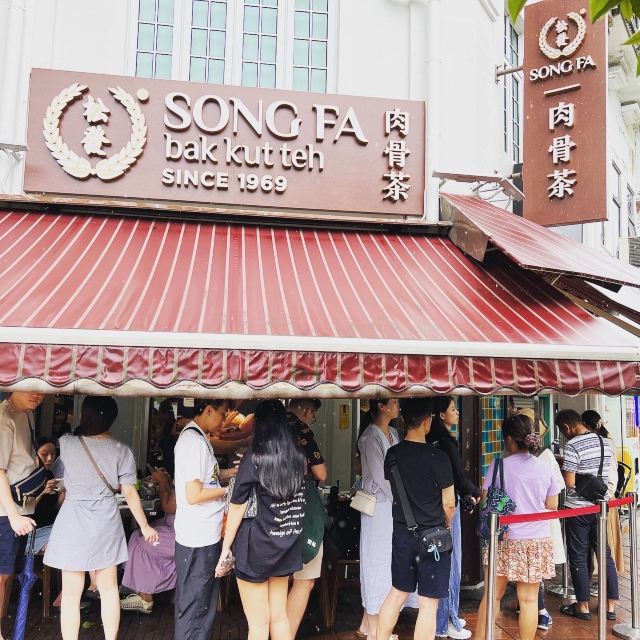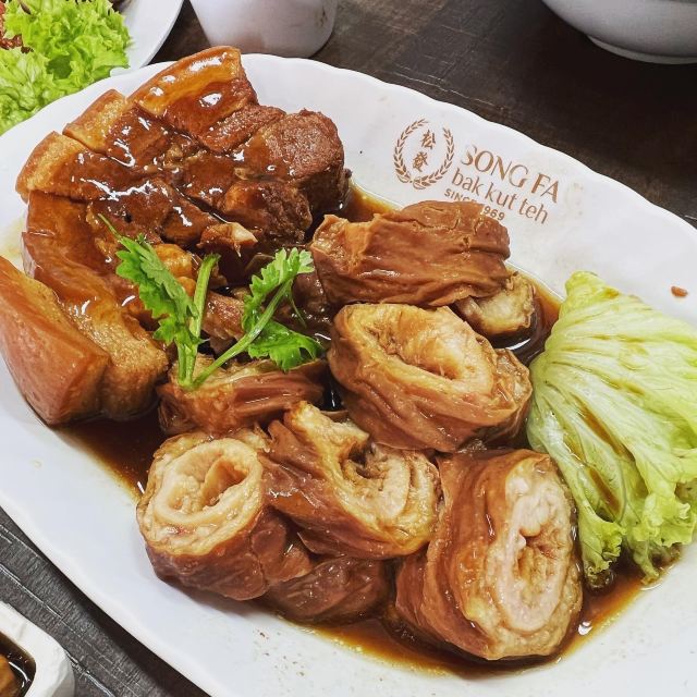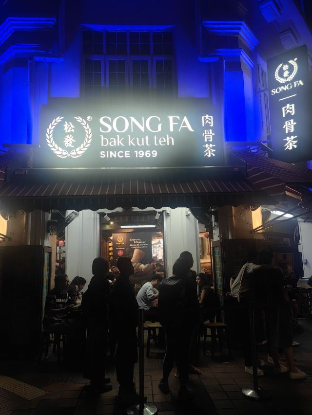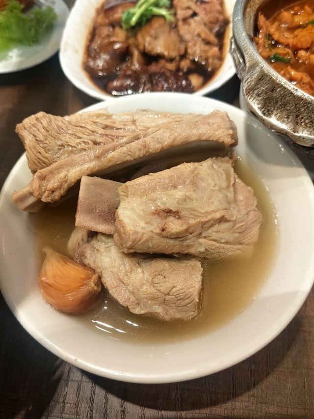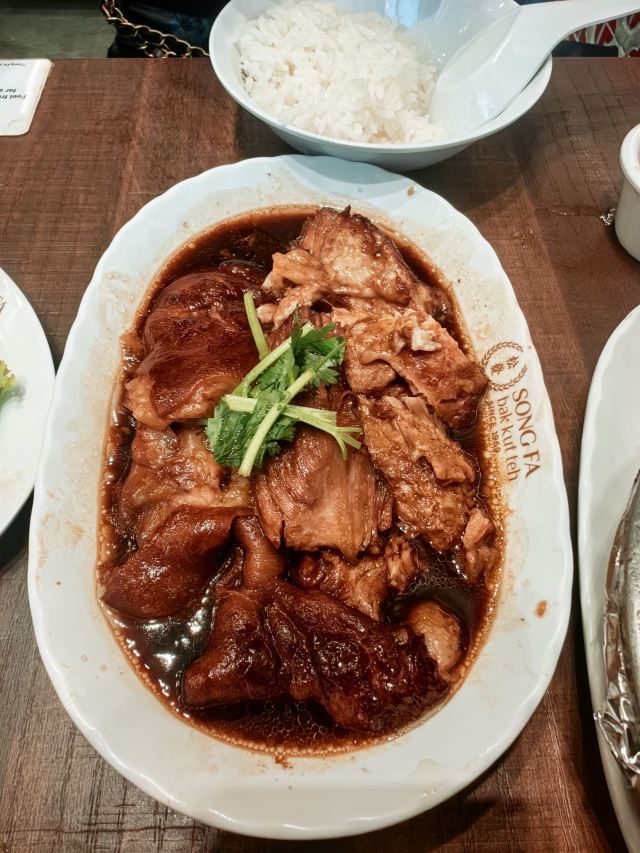 Song Fa Bak Kut Teh(11 New Bridge Road)这家新加坡的知名餐厅可谓独具特色。餐厅有两家店且位置相近,这为食客们提供了更多选择的便利。然而,其受欢迎程度也导致常常需要排队,可见人气之高。 我这次来的时间稍晚,遗憾的是很多菜点已经售罄,但好在最具特色的肉骨茶还有。肉骨茶确实非常有特色,汤鲜味美,茶味浓郁,让人回味无穷。其中的肉块特别大,脆骨更是香气四溢。强烈推荐一人一碗,尽情享受这独特的美味。 此外,餐厅的卤猪脚与国内广西隆猪脚饭有相似之处,口感软糯,香味十足。砂锅肉片也别有一番风味。 总的来说,这家餐厅的肉骨茶值得一试,虽然可能需要排队且存在菜点售罄的情况,但那独特的味道定会让你觉得不虚此行。