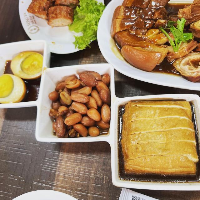 肉骨茶,卤大肠,卤猪脚,油条,芥蓝,猪腰汤,红烧猪脚,自制五香卷,海南鸡饭,汤肉骨茶,卤味拼盘 / 卤猪脚/肥肠,炸油条配汤