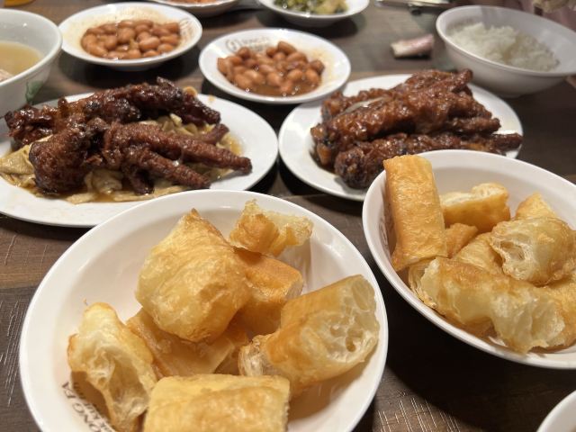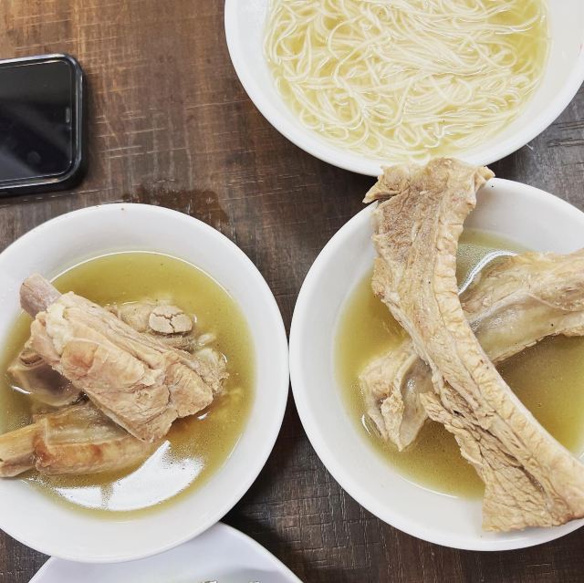 artistfx1118肉骨茶 肉骨茶不错,排骨分很多部位 排骨肉骨茶 遮盖是肉骨茶的基本款,可以免费续汤,普通排骨,味道不错,里面有胡椒的味道 肋骨汤 也是肉骨茶的一种,排骨换乘肋骨 砂锅腰肉片 腰肉个人感觉是里脊头,肉很嫩,鲜咸,微甜,很好吃 油条 可以泡在肉骨茶里 面线汤 也是肉骨茶汤煮的面 焖凤爪与腐竹 凤爪和腐竹的拼盘 焖凤爪 皮很软糯 焖腐竹 很入味,很香 卤拼盘 三样,花生,豆腐和鸡蛋 卤豆腐 不太入味 卤花生 很好吃 卤蛋 还可以 五香卷 味道很好,很香,里面是肉 卤大肠 很好吃,入味, 卤扣肉 肥瘦相间 卤扣肉拼大肠 五花肉和大肠拼在一起 [薄荷]环境: 一般,天气热还是不好受 [服务铃]服务: 还可以,有中文菜单