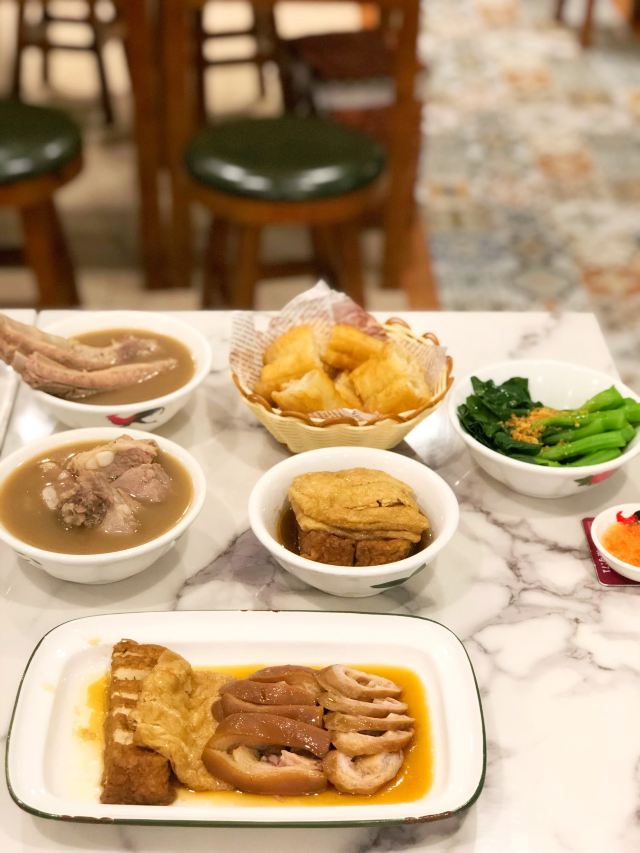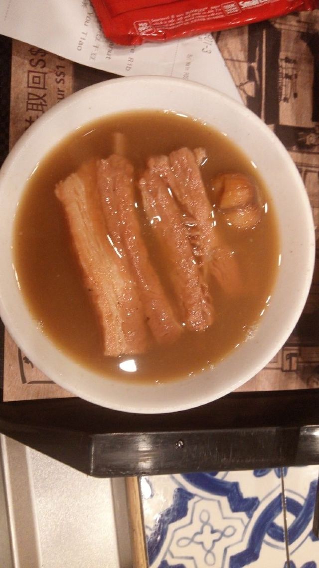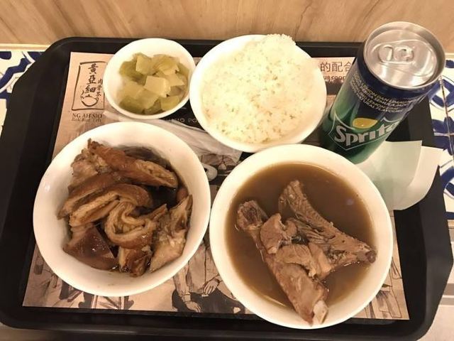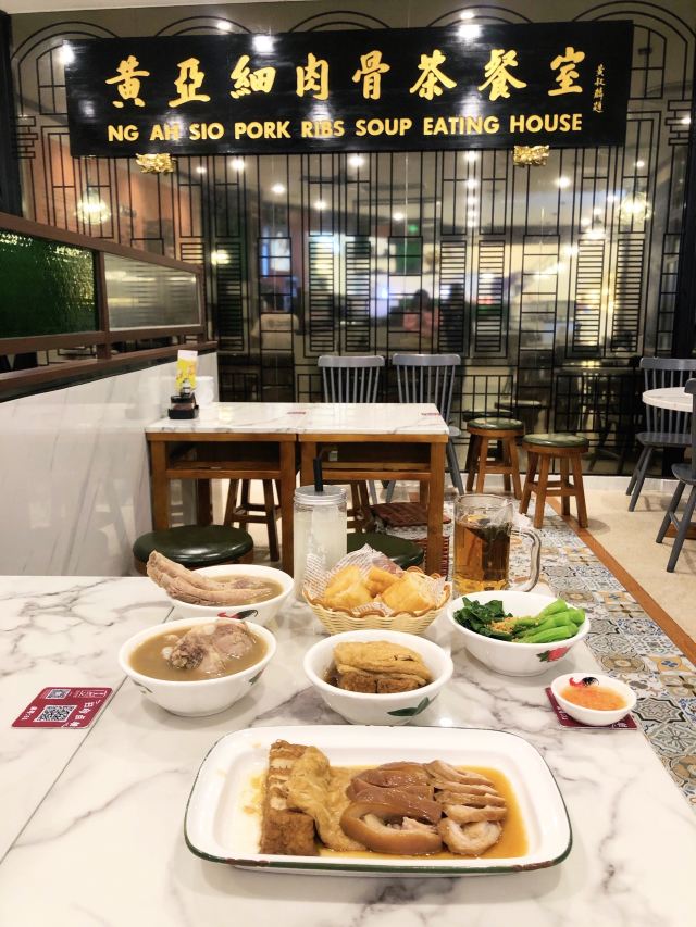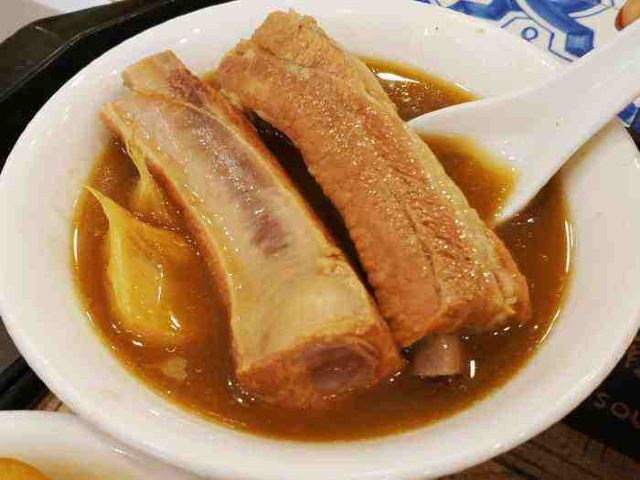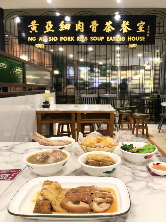NG AH SIO Bak Kut Teh (Rangoon Road)⭐来自马来新加坡的肉骨茶 终于魔都首家店开在了 ONE ITC商场内 🍑🍑🍑🍑🍑🍑🍑🍑🍑🍑🍑🍑🍑🍑🍑🍑🍑🍑 ❣️地址:华山路1901号(国贸汇广场地下2层) 时间:11:00:21:00 🍓🍓🍓🍓🍓🍓🍓🍓🍓🍓🍓🍓🍓🍓🍓🍓🍓 🔥新加坡的肉骨茶真的算是非常有名了,终于有机会来的上海,绝对要去尝试一下 [薄荷]环境: 这家店不是很大,简约的设计,满满的新加坡式风格,但是门口的大招牌却非常的醒目,店内很整洁,墙壁上写满了品牌的故事和肉骨茶的介绍~让第一次来的人都有了深刻的印象 🍎🍎🍎🍎🍎🍎🍎🍎🍎🍎🍎🍎🍎🍎🍎🍎🍎🍎 📸错峰去的,人不是很多,店内的菜品还是非常丰富的,但是永远不变的招牌就是☞肉骨茶 |招牌肉骨茶^一大两小块猪肋排,浸泡在胡椒味浓郁的高汤中,非常的入味了,还有一丝草药的味道,肉也炖的很嫩,筷子一夹,肉就出来了,一点也不腥其中还传出淡淡的肉骨茶香味,闻着味道都让人食欲大开(汤可以再加哦)