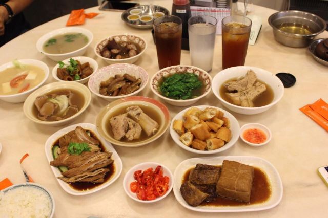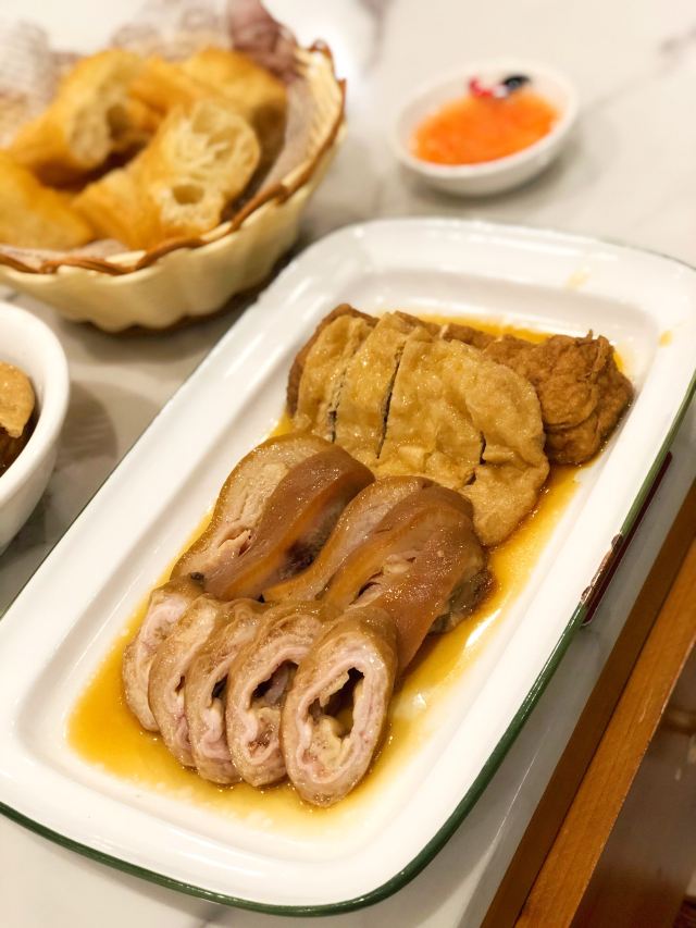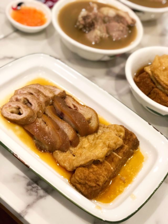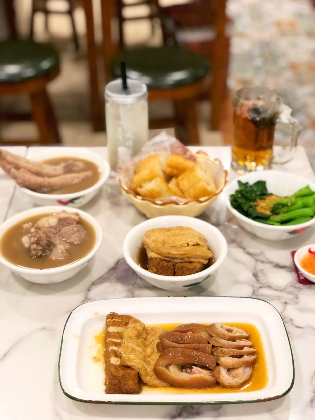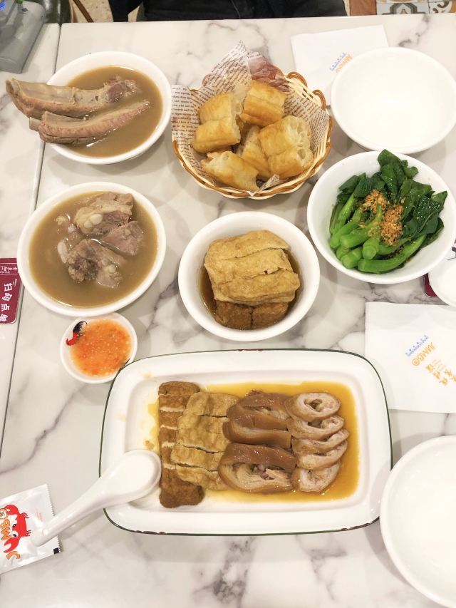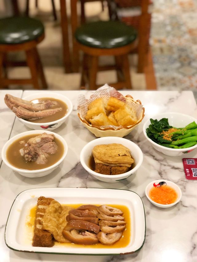 招牌肉骨茶,炸油条,卤豆腐,招牌排骨汤,油条,肉骨茶,大蒜腌菜,猪腰汤,炖蹄花,猪尾汤