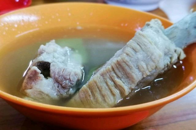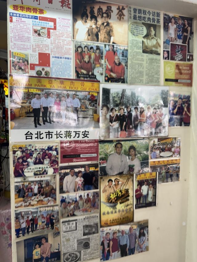 这家店几乎是新加坡的华人无人不知,无人不晓。地理位置不错,离圣淘沙、怡丰城都不远。来这家餐厅吃过的明星不在少数,沈殿霞、胡瓜都来吃过,墙上贴满了明星照片。香喷喷的肉骨加汤,那真是味觉上的一大享受。刚端上桌的肉骨茶,汤特别鲜美,当然,用汤来泡饭、泡油条、烫蔬菜也很鲜,而且靓汤可以无限续碗,保你喝够。