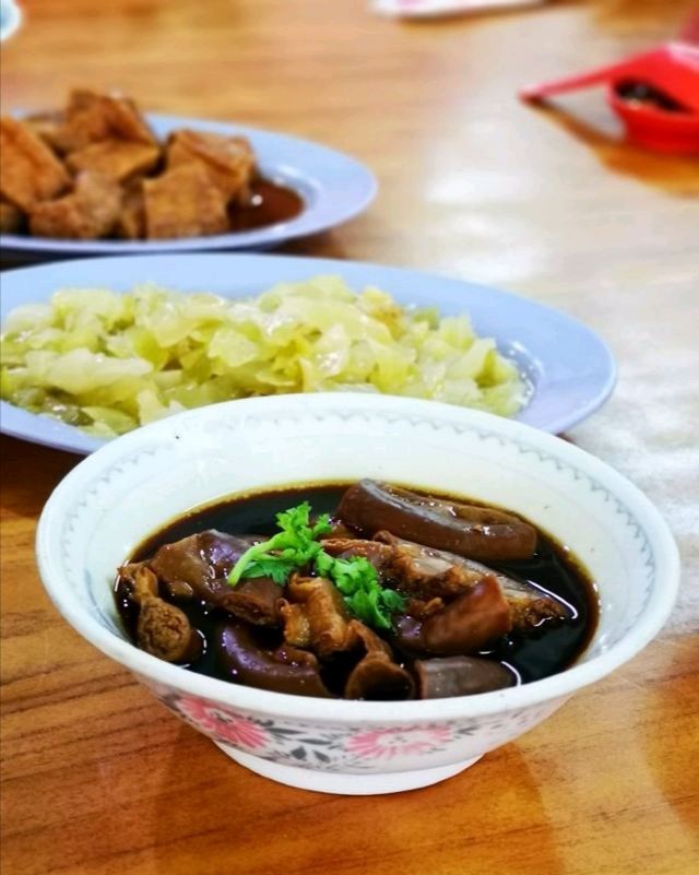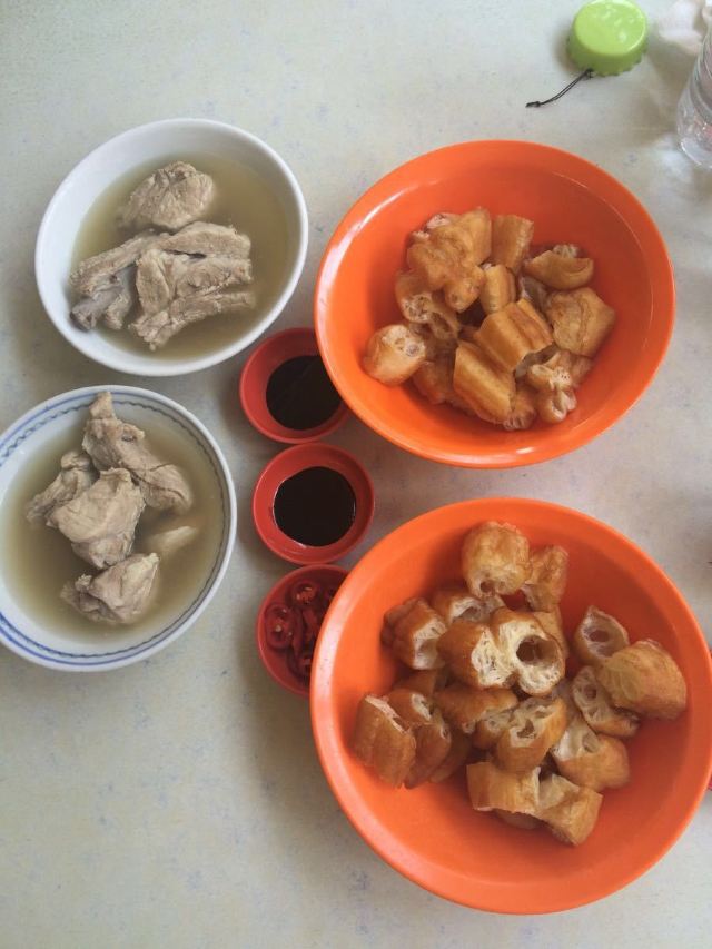 招牌肉骨茶,卤猪脚,油条,酸菜,烫青菜,猪肚汤