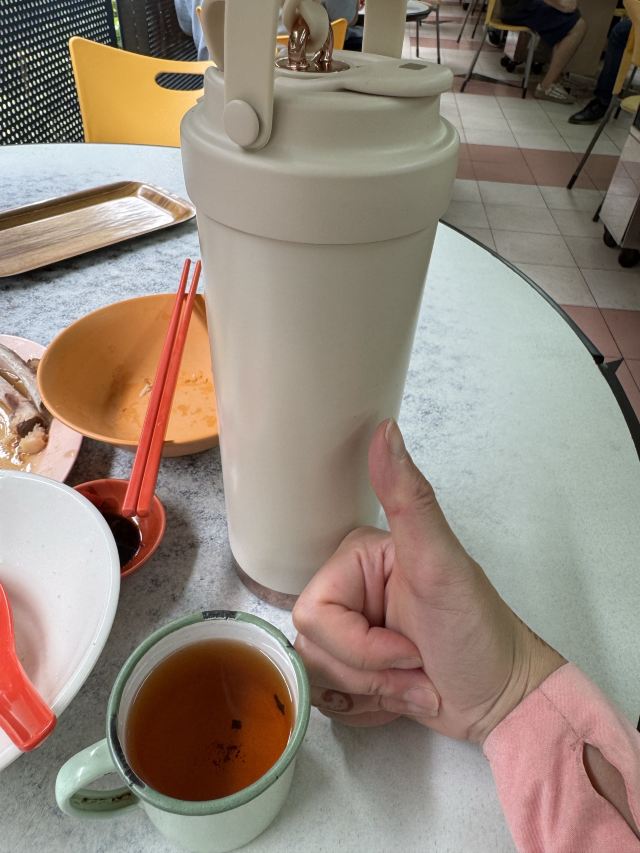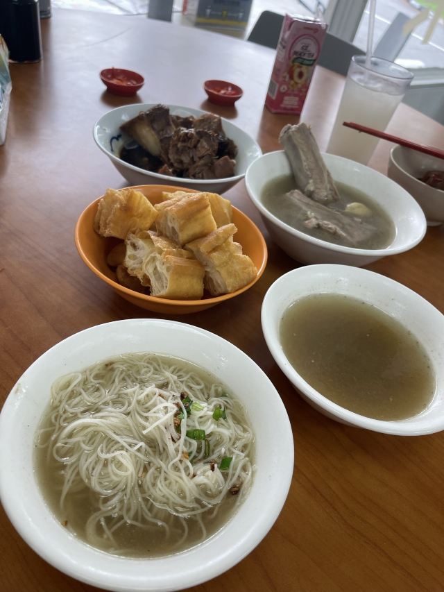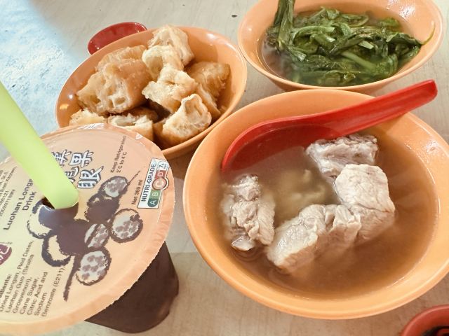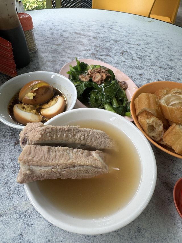 Natalia_wei欧南园亚华肉骨茶 这次跑到欧南园吃肉骨茶 我点的有 🟡特选正排骨 14.8 🟡卤蛋 3 🟡油条 3 🟡蚝油菜心 7 肉骨茶胡椒味浓厚,第一口喝太快就呛到,各位请慢慢享用,味道是约喝越上瘾,antie会走来走去看你碗喝一半就会加汤了,她们看我都没加油条,两位antie轮流过来跟我说要加在汤里吃😂 排骨软嫩,非常好吃,不会炖过头,肉香满满的; 🥚卤蛋中规中矩,蛋黄香味浓厚; 油条不油腻,不会炸得太干,泡进肉骨茶里,很快就吸饱了汤汁,很好吃😋我非常喜欢😘; 蚝油菜心,因为好少吃到蔬菜就点了这道,一点点的酱油加上油葱酥,咸香够味,十分推荐。 总结:新加坡的肉骨茶,是以胡椒汤头闻名的,喜欢胡椒的人一定会跟我一样著迷,每家肉骨茶的风味都不同,目前亚华是我心中第一名🥇 另外,antie看我用保温瓶在喝水,还问我要不要把水装满,还加了冰块,也招待我喝了一杯普洱茶!感谢她 🥰🥰🥰🥰