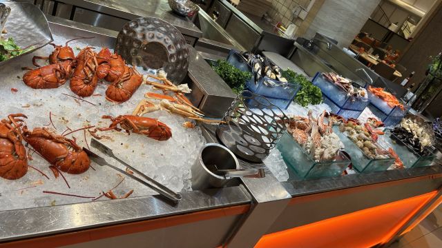 在斯科特路的免税店边上,专门吃自助餐的,看到里面小青龙也有,就进来吃了,海鲜类都比较新鲜,三文鱼也不错,这个价位在新加坡也可以接受。
