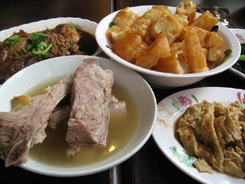 发起人肉骨茶,瘦肉片汤,卤猪蹄,龙骨,卤猪肠,卤腐皮,长排骨,小排骨,肉骨茶,猪手,卤蛋,油条,猪油渣菜心,猪内脏汤,卤猪脚,卤豆干