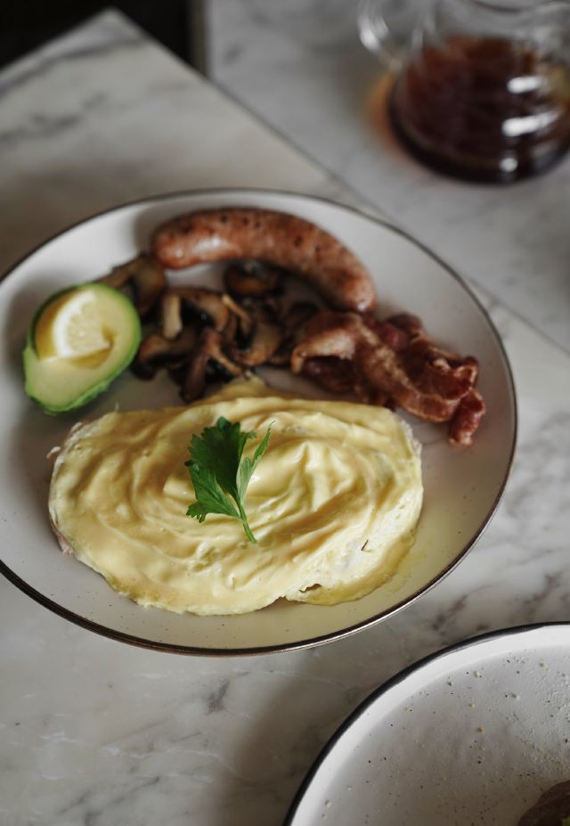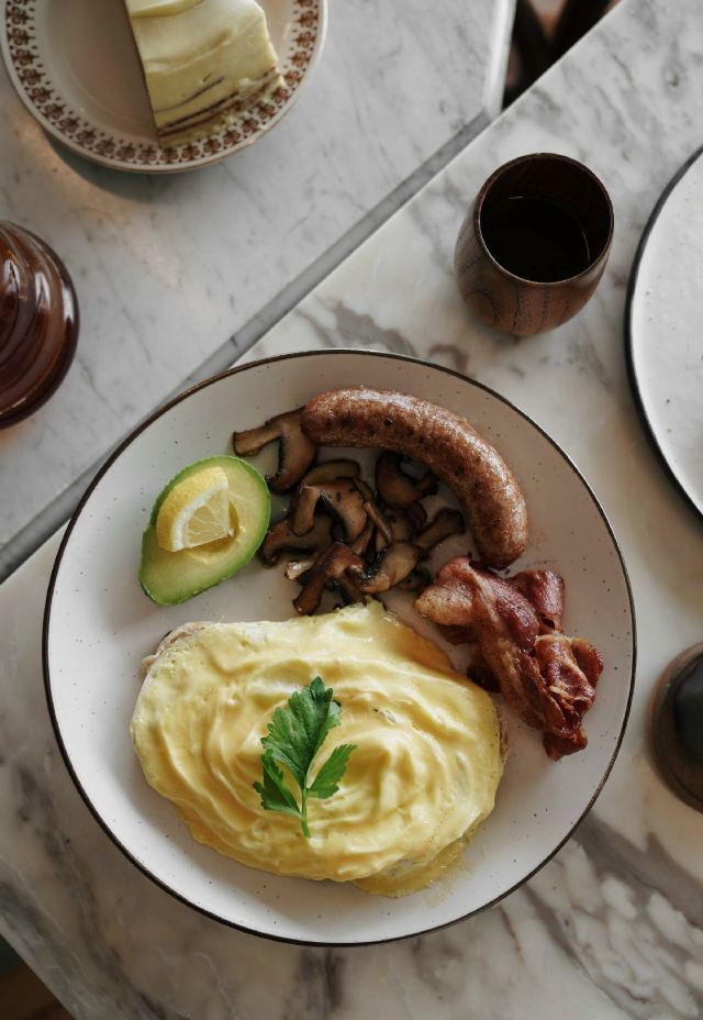 轻轻的一个蚊“黑金” 在这里说的不是石油 它比喻着咖啡 这另一种黑色液体的价值 咖啡来自[Necessary Provisions] 也是小有名气的团队 奶咖又绵又顺 手冲忘了什么豆 只记得很好喝 直接给一壶 就像在家里那样 能喝得过瘾 因为太好喝 又加点两杯特调 ▪️ᴏʀᴀɴɢᴇ ᴄᴏғғᴇᴇ 底层鲜榨橙汁 有很丰富的果肉感 倒入一杯浓缩咖啡 喝过无数类似特调 由苦及酸的渐变 浓郁的果香 他家都无可比拟了 美貌的高脚杯继续加分 在铺天盖地的日系或北欧餐具里 脱颖而出 ▪️sᴛʀᴀᴡʙᴇʀʀʏ ʟᴀᴛᴛᴇ 新鲜草莓榨汁 鲜奶作为过渡 最顶上铺好厚厚的鲜奶油 酸甜可口 奶香温柔 经典组合+真材实料 就没有理由不好喝 独创的水单款款让人心动 是一定要再去喝上n杯的。 ▪️ʙʀᴇᴀᴋғᴀsᴛ ᴘʟᴀᴛᴇ 滑蛋是很久不见的完美状态 嫩而不散 滑得不生 蛋香和黄油香融合得很好 猪肉肠扎扎实实的一点不粉 除了吐司有点逊色 牛油果/蘑菇/煎培根 个个水准在线 ▪️ᴀᴠᴏᴄᴀᴅᴏ ᴏɴ ᴛᴏᴀsᴛ 白白嫩嫩的水波蛋 戳开缓缓流黄 牛油果随意压成泥 用自制的中东混合香料(ᴅᴜᴋᴋʜᴀ)调味 咸香而有浓郁坚果味 简单又好吃 蛋糕是自家做的 每天看心情烘焙 吃到哪款就很随缘 去晚了还会卖完 ▪️ʀᴜssɪᴀɴ ʜᴏɴᴇʏ (ᴍᴇᴅᴏᴠɪᴋ) 拿到最后一块 俄式蜂蜜千层蛋糕 薄层海绵蛋糕带着蜂蜜的甜香 中间填上乳霜层层叠起 刚烤好偏干实的蛋糕 慢慢吸收奶油的水分 整体口感比较扎实 但也保证一定程度的湿润和松软 低甜不腻 一般蛋糕都讲究精致 但这块朴实无华的蜂蜜蛋糕 也不知道为啥就很难停下来。