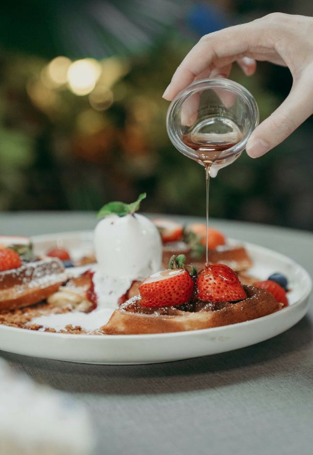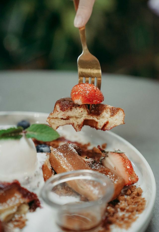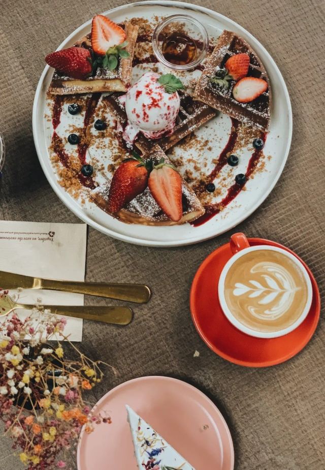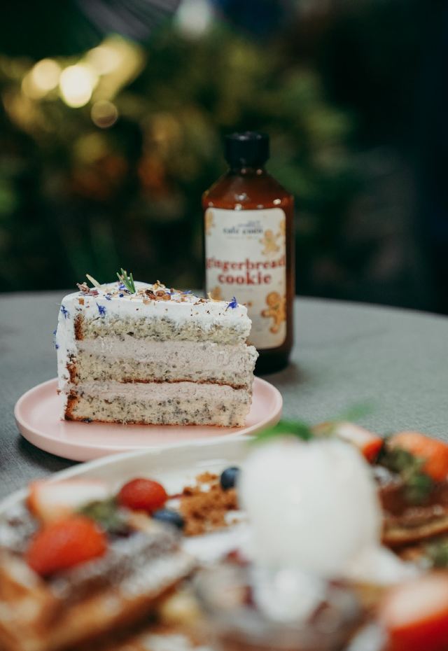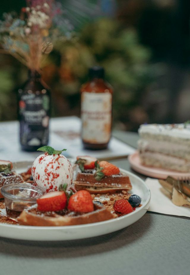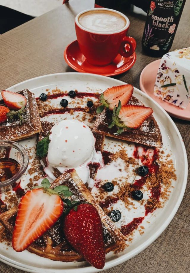 轻轻的一个蚊【Café Coco】,这间咖啡馆开在食阁外面,因为开放式的空间,这里也成许多遛狗人士遛完狗狗歇脚的地方,一到周末就可以看到各种大型犬小型犬聚集,相当可爱又温馨。咖啡馆正对着滨海花园的擎天树,四周布满的绿植也让环境更加舒适。 经典的【Fresh Berries Waffles】颜值相当高,华夫饼配上新鲜的草莓和蓝莓,中间还立着一粒冰淇凌,好吃又好拍。 【Raspberry Lychee Rose Cake】同样是很上镜的一款蛋糕,三层的蛋糕烘烤的蓬松松软,中间夹心是山莓果奶油,外面一层的奶油甜而不腻,最后用各种色彩丰富的花瓣点缀,颜值实在是不要太高,每一口还能尝到淡淡的花香,真的是必点。 他家还有限定的【French Lavender Brunch Set】和几款特定薰衣草饮品如【French Lavender Latte】【Earl Grey Lavender】都需要提前在网上预订哦。