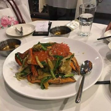 同乐招牌辣椒螃蟹,麦片虾,蒜茸粉丝蒸竹蚌,三色蛋苋菜,带子炒芦笋,杏仁咖啡排骨,辣椒螃蟹,黑蒜烤生蚝,竹蚌,三层楼豆腐,XO酱三文鱼炒饭,小馒头,炒蟹,椰子水