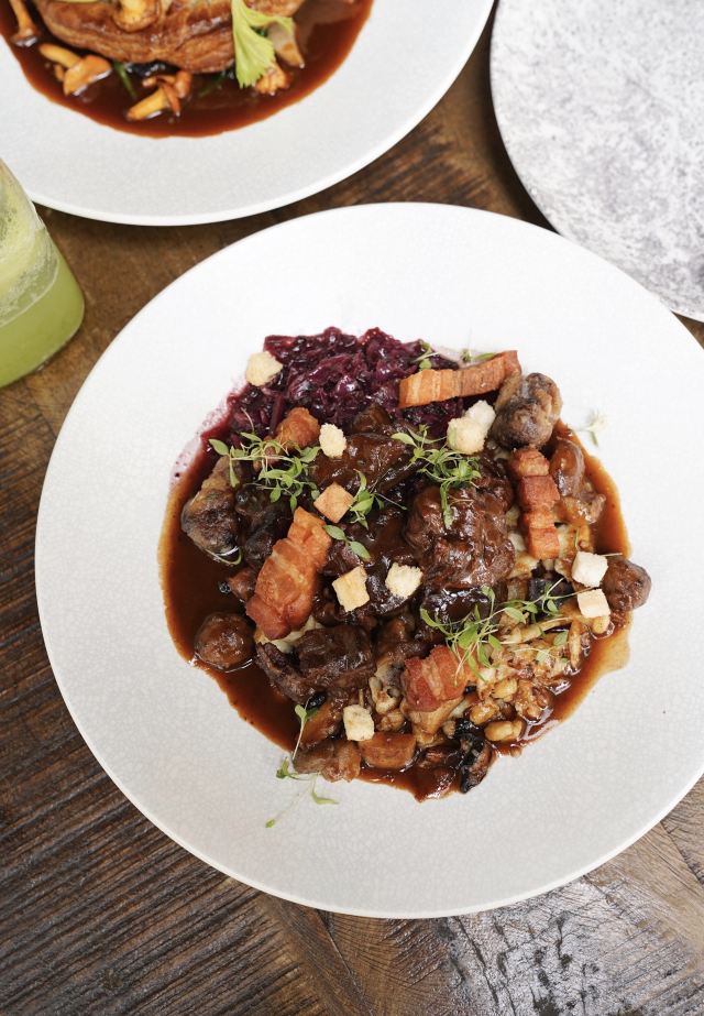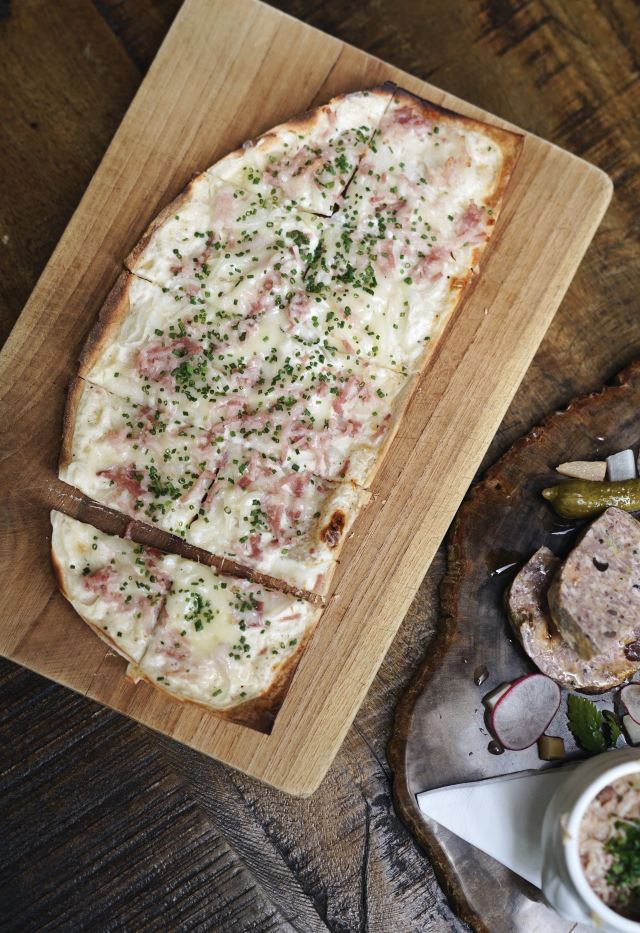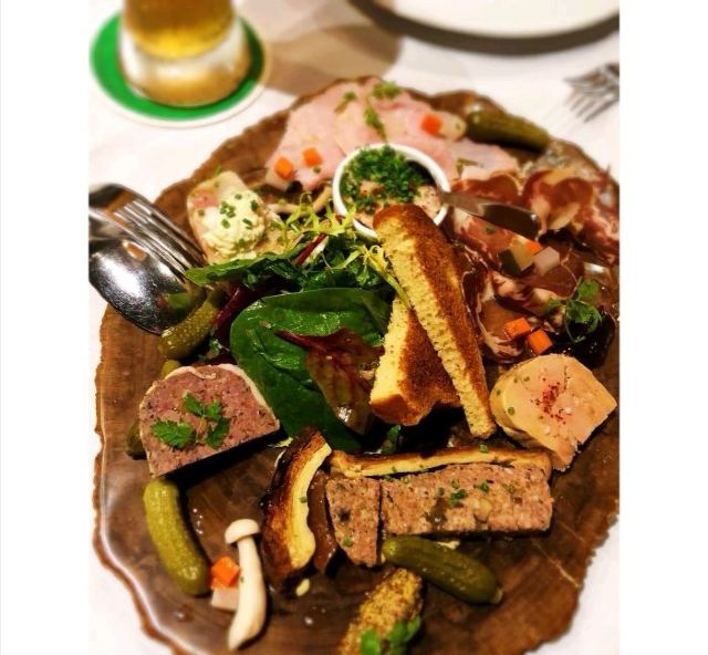 考拉羊洋我的米其林法餐食堂 最近推出了一年一次的秋季限定“野生”菜单! 主菜食材用的是比较少见的鹿肉/野猪/野鸭 配菜是很有秋季特色的菌类和栗子 甜品也多了热乎乎的玛德琳。果断又安排上了 从前菜拼盘到三份甜品 可以慢慢地吃上大半天。份量一如既往的慷慨 这也可能是我吃过最“硬核”的brunch ᴀᴘᴘᴇᴛɪᴢᴇʀ ᴠᴇɴɪsᴏɴ ᴘᴀᴛᴇ ᴇɴ ᴄʀᴏᴜᴛᴇ 传统法式酥皮肉酱 把猪肉换成鹿肉 口感更加紧致弹嫩。中间一大块鹅肝细腻浓郁 再加上开心果和黑醋栗 抹上橄榄油加鲜美的肉汁 是吃到现在最喜欢的一次! ᴄᴏᴜɴᴛʀʏ ʙᴏᴀʀ ᴛᴇʀʀɪɴᴇ 野猪肉酱跟上面那个做法差不多 但一起烹制的蘑菇/黑醋栗/榛果 不管在味道还是口感上都特别加分。 ʀᴀʙʙɪᴛ ʀɪʟʟᴇᴛᴛᴇs 比起柔烂的传统鸭肉抹酱 野兔肉明显更有嚼劲 但入味程度一点没妥协 搭配各种香肠/醋腌泡菜/烤吐司丁/黄芥末酱。不知道前菜怎么点的时候 platter永远不会出错。不得不说法国人确实会吃 换成肉质鲜弹的野味 果然整个拼盘都变更好吃了 ᴀʟsᴀᴛɪᴀɴ ᴛᴀʀᴛᴇ ғʟᴀᴍʙᴇᴇ(ᴄʟᴀssɪᴄ) 德法混血方形“披萨”。薄脆饼底加白芝士和鲜奶油 铺满咸香的火腿丝。今天的芝士奶油无比新鲜浓郁 又比以前更好吃了