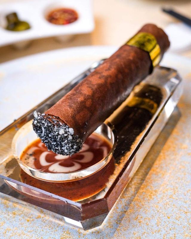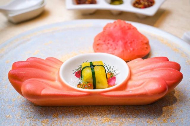 乌达烧麦,龙须玉带卷,蚝皇汁蒸凤爪,野菌三菇饺,鲜肉小笼包,蜜汁叉烧包,鲜虾腐皮卷,豉椒蒸排骨,苹果木烟熏烧鸭,芥末蛋黄酱油炸大虾,燕窝,黑松露鹅肝雪茄卷,南洋风味脆鳞笋壳件,宫保猴头菇,和牛牛颊肉日本白萝卜煲,烤乳猪,百花酿蟹皇扒天津粉,鸿桃四喜,神户牛肉,蟹粉小笼包