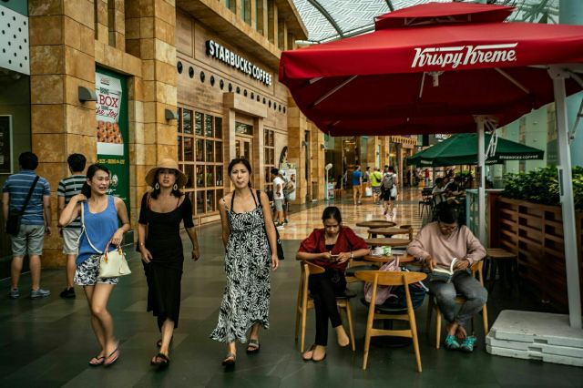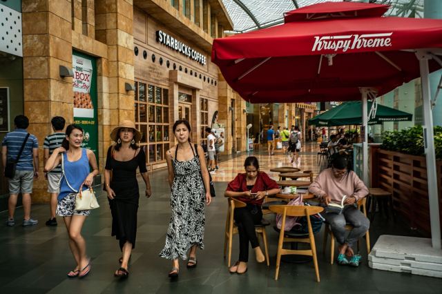 旅游度假圣淘沙岛上的星巴克在英比奥小路上 ,店内的生意真的非常的好,买一杯咖啡需要排上十几分钟的队。这里的咖啡品种非常的多,味道也很不错,还是非常值得来品尝一下的。