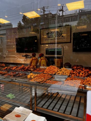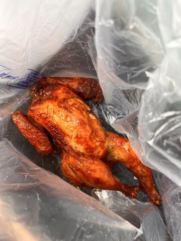 2023年暑假旅行第三站,山东省淄博市。 第一天早上逛八大局的时候就在入口处看到国梁烤鸡,看起来就非常诱人,卖相一流,但是早上吃确实太油腻了。没有买。 第二天中午,出发去齐国博物馆的时候,在楼下等车,正好看到国梁烤鸡总店,等车要二十分钟,正好买只烤鸡解决午饭,要了一只最小的40块钱,味道不错,鸡肉又香又嫩,不过有一点点偏咸,总体来说还是很好吃的,分量大,两个人还剩了好多。