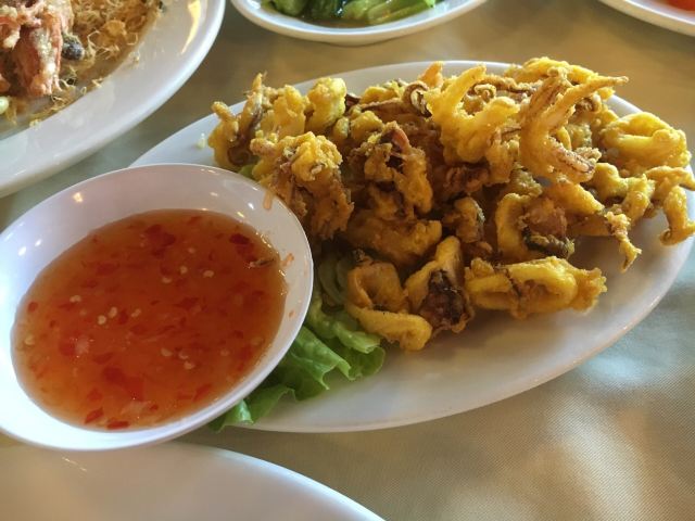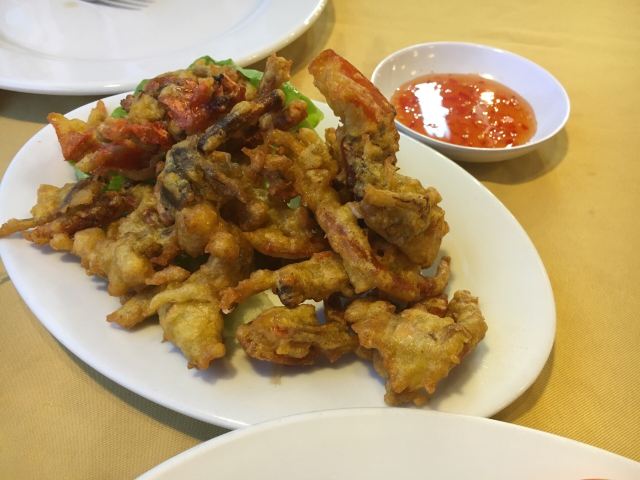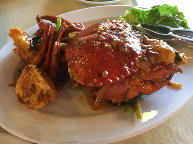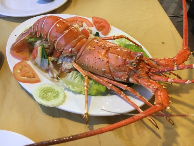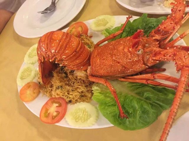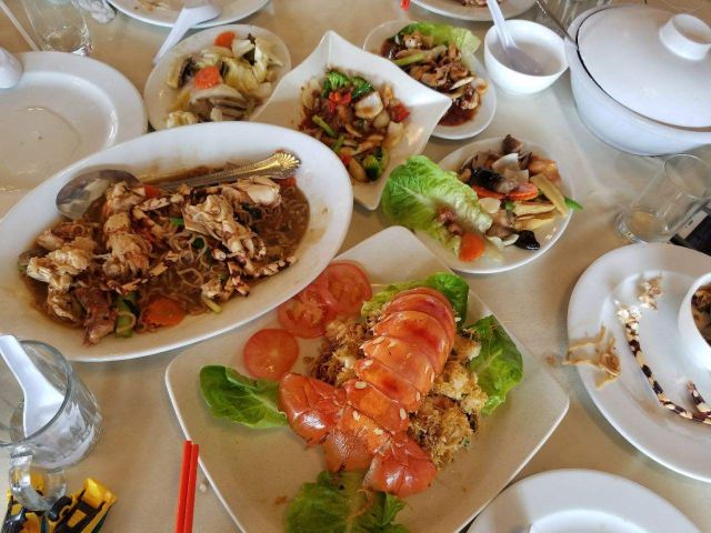 食行天下旅行家装修不算最好,但从口碑来说绝对是珍南这边人气最旺的店。他家下午毕店休息,晚上六点钟营业。 之前来早了,所以去了旁边不远的大家乐。这次赶上刚开门就来了,他家规模在珍南数一数二,店员都是统一着装,非常正规。服务员很多都会中文。即使不会,简单的一两句交流也能听懂,交流完全没问题。点菜过程也很正规,点好海鲜种类数量和做法,直接带客人过去现场挑选,挑好海鲜当面过秤,按重量算价格。让人感到放心,对自己的消费做到心中有数。上菜速度还是比较快的,菜量也是可以的。 他家的东西做得确实不错,首推奶油老虎虾。点了三只老虎虾做好后端上来首先感觉是虾个头很大,很新鲜,都经过开背处理,炸制得非常酥脆,肉质紧致鲜嫩。这道菜做法上和真浪大家乐有所不同,大家乐的配料是湿奶油,汤汁很多,是把虾先炸过之后再浇上去的,味道很浓郁。而他家是将配料裹附在虾上一并炸制而成,口感不同,但味道很好,让人看着很有食欲。鲜活龙虾选的大小适中,做法选的用葱姜炒,这是中国传统的做法,个人比较喜欢,绝对最能吃出鲜香味道来。总体味道不错,比较清淡鲜香。这边的龙虾个头尚可,肉也不少,但如果细比较和澳龙比就相差太远,个头和味道都不是一个层次了。这里的肉蟹很不错,个头大,肉也多。做法有很多种,这次选择了他家特色金香口味的,味道甜香,微微带一点辣,很不错。另外炸软壳蟹和鱿鱼圈味道很好,入口酥脆,蘸着配好的甜辣汁吃味道酸甜可口。他家菜量不小,价格也不算特别高。主食炒饭和一些菜点的都是中份和小份,都足够两个人吃。 总体感觉很满意,前后来了两次都是赶早来的。到晚上七八点钟餐厅爆满,看到很多白天参加一日游同团的中国游客。