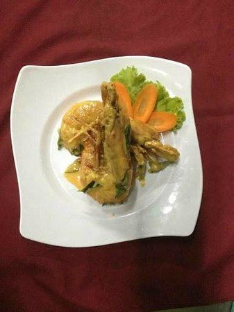 姜葱花甲,咸旦黄炒蟹,老虎虾,螃蟹,海鲜,洋葱牛肉,亚参咖喱鱼,炒杂菜,海鲜炒饭