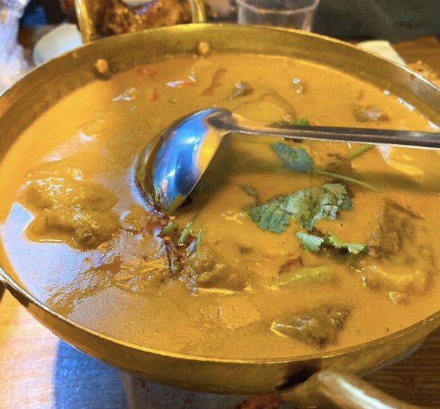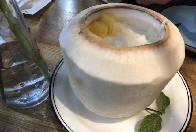 西贡_☘️环境: 浓浓的东南亚风情,环境没得说,喝水的杯子尤其好看,还有师傅在外面直接做飞饼,就是太撑了要不然也想试试饼; 「咖喱皇炒大虾」咖喱好好吃啊,好想就着米饭一起吃,虾🦐很大又新鲜; 「三杯鸡」看好多人都点也试试果然不踩雷,一点也不腻,量也很多; 「菠萝炒饭」料很丰盛,也有虾仁 腰果 腊肠还有叫不出名的东西;看好多人都点这个; 「椰子奶冻」不喜欢喝椰子的我却爱上了椰奶冻,一丝丝甜冰凉凉,芒果➕薄荷,颜值也是极高了; 两个人点了四个菜根本也吃不完,我看其他桌的基本也都吃不完最后都会打包。 下次去想试试粉丝煲,看着感觉好吃😋